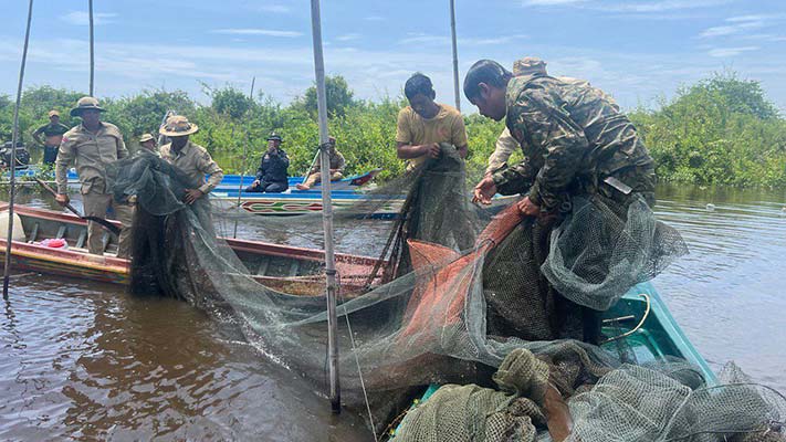 ទន្លេសាប ចុះបង្ក្រាបបទល្មើសនេសាទនៅក្នុងបឹងទន្លេសាប ដោយចុះប្រតិបត្តិការបង្រ្កាបបទល្មើសនេសាទនៅចំណុចកោះគ្រប់បាយ ស្ថិតក្នុងភូមិពៅវើយ ឃុំពាមបាង ស្រុកស្ទោង ខេត្តកំពង់ធំ នៅថ្ងៃទី០៧ ខែកញ្ញា ឆ្នាំ២០២៤។