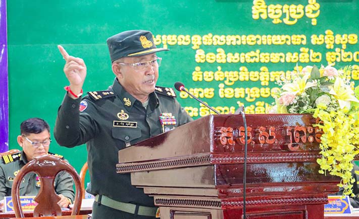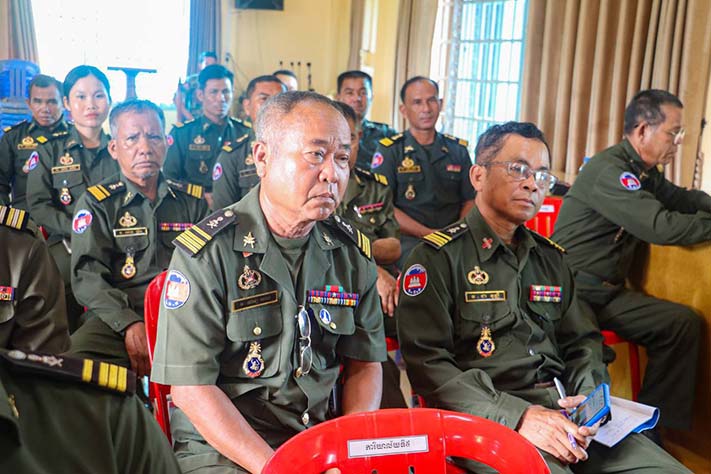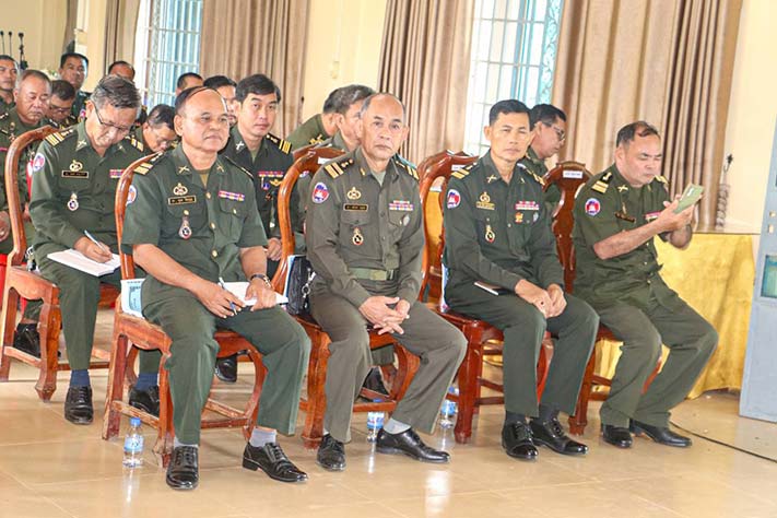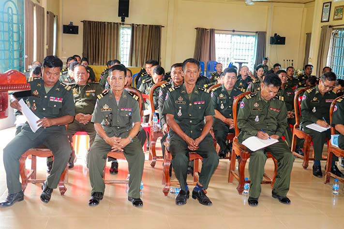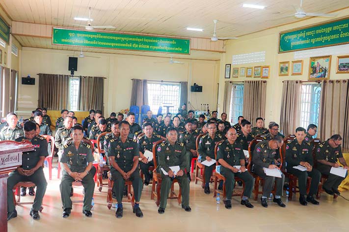 ក្នុងកិច្ចប្រជុំនោះដែរ ឯកឧត្តម មេបញ្ជាកា បានផ្សព្វផ្សាយនូវបទបញ្ជារបស់ឯឧត្ដម នាយឧត្ដមសេនីយ៍ អគ្គមេបញ្ជាការរង នៃកងយោធពលខេមរភូមិន្ទ និងជាមេបញ្ជាការកងទ័ពជើងគោក ស្ដីអំពីការចុះបង្ក្រាបការពារទប់ស្កាត់បទល្មើសកាប់ព្រៃឈើអភិរក្សរបស់រដ្ឋយកដីធ្វើកម្មសិទ្ធ នឹងបទល្មេីសផ្សេងៗ តាមបទបញ្ជាដ៍ខ្ពង់ខ្ពស់របស់ប្រមុខរាជរដ្ឋាភិបាល នៅក្នងភូមិសាស្ត្រខេត្ដព្រះវិហារ ជូនដល់អង្គប្រជុំអោយបានជ្រាប និងបានដាក់បទបញ្ជាដល់បណ្តាកងឯកភាពដែលឈរជើងនៅជាប់តាមខ្សែបន្ទាត់ព្រំដែន កម្ពុជា- ថៃ-ឡាវ ត្រូវបន្តយកចិត្តទុកដាក់ឱ្យបានម៉ឺងម៉ាត់ ម្ចាស់ការត្រួតពិនិត្យ និងដើរល្បាតឱ្យបានជាប់ជាប្រចាំ ដើម្បីធានាការពារអោយបាននូវបូរណភាពទឹកដី និងទប់ស្កាត់អោយបាននូវរាល់បទល្មើស ពិសេសបញ្ហាគ្រឿងញៀន។