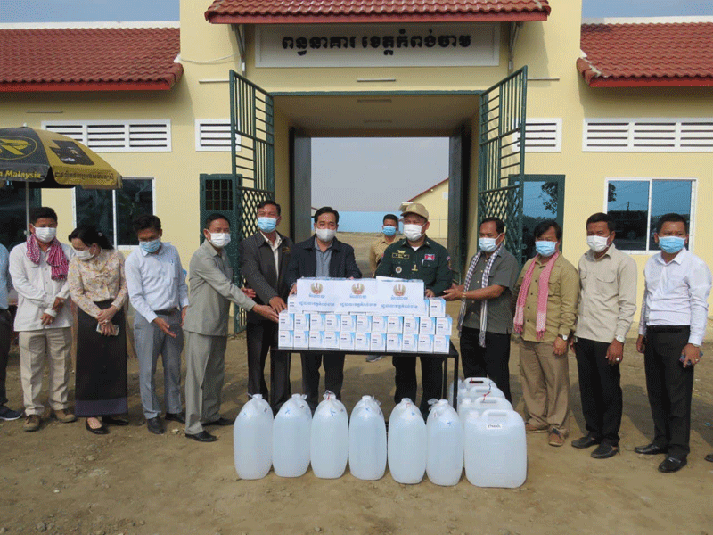 កំពង់ចាម : ឯកឧត្តម អ៊ុន ចាន់ដា អភិបាល នៃ គណៈ អភិបាលខេត្តកំពង់ចាម អមដំណើរ ដោយ ថ្នាក់ ដឹក នាំ មន្ទីរ អង្គភាព ពាក់ព័ន្ធ និង អជ្ញាធរ ស្រុក នាព្រឹក ថ្ងៃ ទី ១០ ខែមិនា ឆ្នាំ ២០២១ នេះ បាន អញ្ជើញ ផ្តល់ អាកុល ចំនួន ៣០០លីត្រ និង ម៉ាស ២០០០ ជូនដល់ មន្ត្រី អនុរក្ស ពន្ធនាគារ ខេត្តកំពង់ចាម សម្រាប់ ប្រេីប្រាស់ ការពារ ជំងឺ ឆ្លង ក្នុង ដំណាក់កាល កូវីដ -១៩ ខណៈ ទីតាំង ពន្ធនាគារ ថ្មីនេះ ស្ថិតនៅ ក្នុង ភូមិ ផ្កាយ ព្រឹក ឃុំ មៀន ស្រុក ព្រៃឈរ ខេត្ត កំពង់ចាម ត្រូវ បាន សាងសង់ រួចរាល់ ជាស្ថាពរ និង មាន ទណ្ឌិត ត្រឹម ៣០នាក់ ។