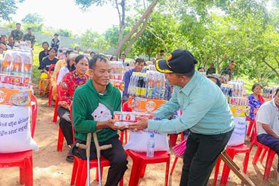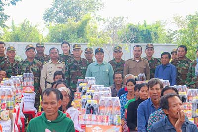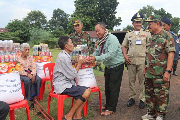 ឧត្តមសេនីយ៍ទោ ច័ន្ទ សុភ័ក្ត្រា បានប្រគល់អំណោយមនុស្សធម៍ របស់សម្ដេចបវរធិបតី ហ៊ុន ម៉ាណែត និងលោកជំទាវជូនដល់គ្រួសារអតី តយុទ្ឋជន ពិការ-ពលី និងគ្រួសារក្រីក្រចំ នួន ៩៧គ្រួសារ ដោយក្នុងមួយគ្រួសារៗទទួលបាននូវ អង្ករចំនួន ២៥គីឡូក្រាម មីជាតិចំនួន ០១កេស ទឹកត្រី ចំនួន០១យួរ ទឹកស៊ីអ៊ីវ ចំនួន០១យួរ និងត្រីខកំប៉ុង ចំនួន ១យួរផងដែរ និងបានណែនាំដល់បងប្អូនអតីតយុទ្ធជនពិការ និងក្រុមគ្រួសារអតីតយុទ្ធជនពលី ត្រូវខិតខំថែរក្សាសុខភាពឱ្យបានល្អ រស់នៅមានអនាម័យ នឹងត្រូវខិតខំបង្ករបង្កើនផលដោះស្រាយជីវភាពរស់នៅប្រចាំថ្ងៃរបស់ក្រុមគ្រួសារនិមួយៗតាមលទ្ធភាព ដែលអាចធ្វើទៅបាន គួបផ្សំនឹងប្រាក់បំណាច់ប្រចាំខែ ដែលរាជរដ្ឋាភិបាលបានផ្ដល់ជូន។