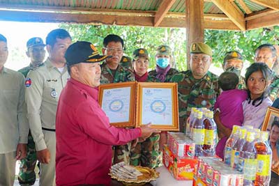 ខេត្តព្រះវិហារ៖ មេបញ្ជាការតំបន់ប្រតិបត្តិការសឹករងព្រះវិហារ លោកឧត្តមសេនីយ៍ទោ ច័ន្ទ សុភ័ក្ត្រា ជាប្រធានសមាគមអតីតយុទ្ធជនកម្ពុជា ខេត្តព្រះវិហារ នៅថ្ងៃទី៩ ខែតុលា ឆ្នាំ២០២៤ បានអញ្ជើញដឹកនាំក្រុមការងារថ្នាក់ខេត្ត ស្រុក និងមន្ត្រីថ្នាក់មូលដ្ឋាន នាំយកអំណោយដ៏ថ្លៃថ្លារបស់ សម្តេចធិបតី ហ៊ុន ម៉ាណែត នាយករដ្ឋមន្ត្រីកម្ពុជា និងលោកជំទាវបណ្ឌិត ពេជ ចន្ទមុន្នី ចែកជូនដល់គ្រួសារអតីតយុទ្ធជន គ្រួសារពលី ពិការ និងប្រជាពលរដ្ឋ ដែលមានជីវភាពក្រលំបាក ៥១គ្រួសារ មកពីឃុំនានា នៅក្នុងស្រុកជាំក្សាន្ដ ខេត្ដព្រះវិហារ។