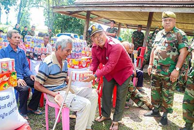 គ្រួសារអតីតយុទ្ធជន ពលី ពិការ និងប្រជាពលរដ្ឋ ដែលមានជីវភាពខ្វះខាតទាំង ៥១គ្រួសារនោះ ក្នុងមួយគ្រួសារៗ ទទួលបានអំណោយជាគ្រឿងឧបភោគ បរិភោគ នៅពេលនោះ រួមមាន៖ អង្ករ ១បេ ,មី ១កេស ,ទឹកត្រី ១យួរ និងត្រីខកំប៉ុង ១យួរ ផងដែរ។