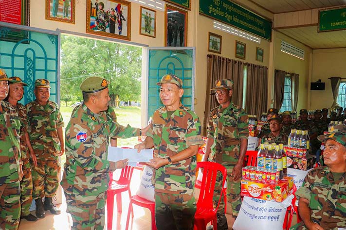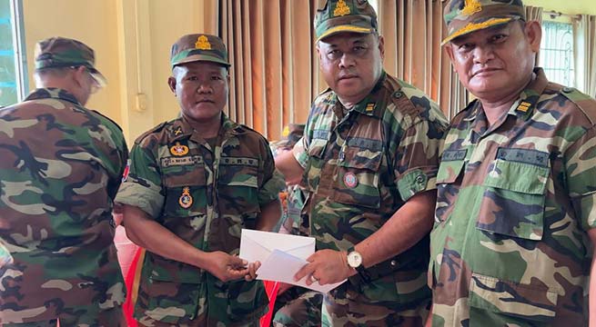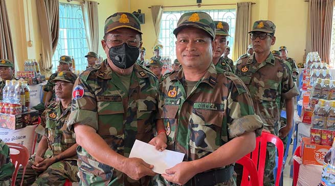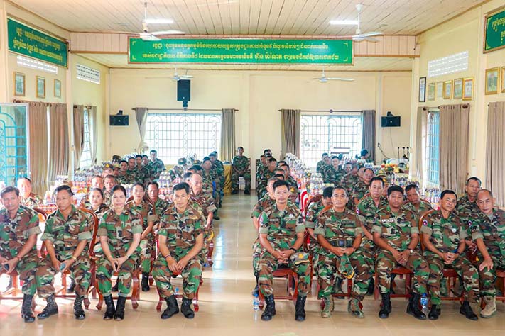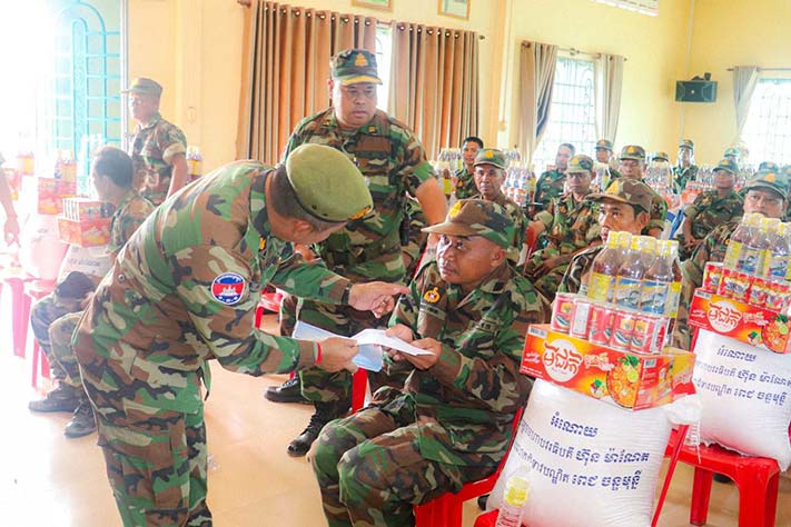 ព្រះវិហារ÷ នៅព្រឹកថ្ងៃទី២០ ខែតុលា ឆ្នាំ២០២៤ នៅទីបញ្ជាការតំបន់ប្រតិបត្តិការសឹករងព្រះវិហារ យោធភូមិភាគទី៤ បានរៀបចំពិធីសំណេះសំណាល ក្នុងមនោសញ្ចេតនាគោរពស្រឡាញ់ចំពោះយោធិន ដែលធ្លាប់ជាមិត្តរួមអាវុធ និងរួមបំពេញការងារ រួមសុខរួមទុក្ខ ក្នុងសម័យសង្គ្រាមនាពេលកន្លងទៅ ហើយត្រូវបានដាក់ឲ្យចូលសោធននិវត្តន៍ តាមការកំណត់របស់ក្រសួងការពារជាតិ ព្រមទាំងផ្តល់ជូននូវស្បៀងអាហារ គ្រឿងឧបភោគបរិភោគ និងថវិកាមួយចំនួន ដែលជាអំណោយរបស់សម្ដេចមហាបវរធិបតី ហ៊ុន ម៉ាណែត នាយករដ្ឋមន្ត្រីនៃព្រះរាជាណាចក្រកម្ពុជា និងលោកជំទាវបណ្ឌិត ពេជ ចន្ទមុន្នី ឧបត្ថម្ភជូនយោធិន ដែលត្រូវចូលសោធននិវត្តន៍ចំនួន៤៥នាក់ដោយក្នុងម្នាក់ៗទទួលបាននូវអង្ករចំនួន២៥គីឡូក្រាម មីជាតិចំនួន១កេស ទឹកត្រីទឹកស៊ីអ៉ីវចំនួន១យូរ ត្រីខកំប៉ុងចំនួន១យួរ និងថវិកាមួយចំនួនផងដែរ ដែលពិធីនេះប្រព្រឹត្តទៅក្រោមអធិបតីភាពឧត្តមសេនីយ៍ទោ ច័ន្ធ សុភត្រ្តា មេបញ្ជាការតំបន់ប្រតិបត្តិការសឹករងព្រះវិហារ។
