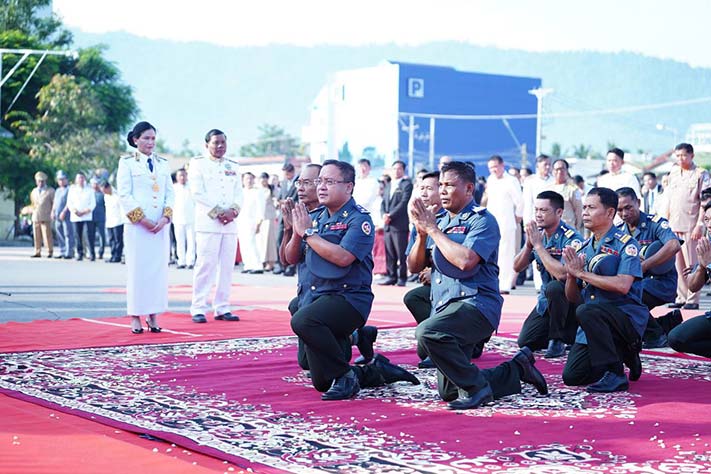 លោកជំទាវបណ្ឌិត បាន ស្រីមុំ អភិបាល នៃគណៈអភិបាលខេត្តប៉ៃលិន បានអាននូវសាលិខិតថ្វាយព្រះពរ ដែលមានខ្លឹមសារថាព្រះករុណាជាអម្ចាស់ជីវិតលើត្បូង ជាទីគោរពសក្ការៈដ៏ខ្ពង់ខ្ពស់បំផុត!ក្នុងឱកាសខួបលើកទី២០ ដ៏មហាប្រសើរប្រកបដោយនក្ខត្តឫក្សឧត្ដុង្គឧត្តមបំផុត នៃព្រះរាជពិធីឡើងគ្រងព្រះបរមសិរីរាជសម្បត្តិរបស់ ព្រះករុណាព្រះបាទសម្តេចព្រះបរមនាថ នរោត្តម សីហមុនី ព្រះមហារបុត្រ នៃព្រះរាជាណាចក្រកម្ពុជា ជាទីគោរពសក្ការៈដ៏ខ្ពង់ខ្ពស់បំផុត ដែលនឹងប្រព្រឹត្តទៅនាថ្ងៃអង្គារ ១២រោច ខែអស្សុជ ឆ្នាំរោង ឆស័ក ព.ស.២៥៦៨ ត្រូវនឹងថ្ងៃទី២៩ ខែតុលា ឆ្នាំ២០២៤ ឈានចូលមកដល់នាពេលខាងមុខនេះ ទូលព្រះបង្គំយើងខ្ញុំទាំងអស់ជាថ្នាក់ដឹកនាំ មន្ត្រីរាជការ កងកម្លាំងប្រដាប់អាវុធទាំងបីប្រភេទ និងប្រជាពលរដ្ឋខេត្តប៉ៃលិនទាំងមូល សូមព្រះបរមរាជាអនុញ្ញាតលំឱនកាយ អភិវន្ទន៍កិច្ចសម្តែងនូវអំណរសាទរប្រកបដោយមនោសញ្ចេតនា រំភើបរីករាយយ៉ាងក្រៃលែង ថ្វាយព្រះករុណាជាអម្ចាស់ជីវិតលើត្បូង។