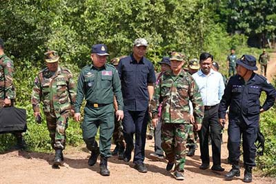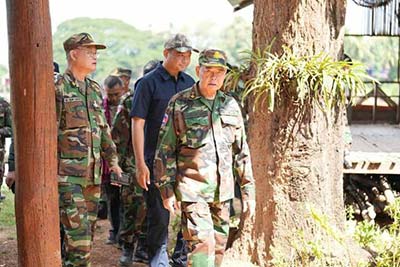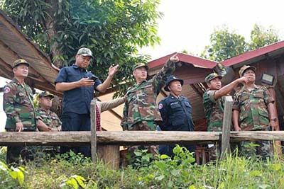 ព្រះវិហារ÷ ឯកឧត្តម នាយឧត្តមសេនីយ៍ ម៉ៅ សុផាន់ អគ្គមេបញ្ជាការរង នៃកងយោធពលខេមរភូមិន្ទ មេបញ្ជាការកងទ័ពជើងគោក នឹងជាប្រធានក្រុមការងាររាជរដ្ឋាភិបាលចុះមូលដ្ឋានខេត្តព្រះវិហារ កាលពីព្រឹកថ្ងៃទី០២ ខែវិច្ចិកា ឆ្នាំ២០២៤បានអញ្ជើញចុះពិនិត្យស្ថានភាពតាមបណ្ដោយព្រំដែនកម្ពុជា-ឡាវ ក្នុងភូមិសាស្ត្រ ឃុំកំពង់ស្រឡៅ ស្រុកឆែប ខេត្តព្រះវិហារ។ក្នុងការចុះពិនិត្យនោះដែរ អមដំណើរដោយ ឯកឧត្តម គីម រិទ្ធី អភិបាលខេត្ត មានការចូលរួម មេបញ្ជាការរងកងទ័ពជើងគោក អភិបាលរងខេត្ត កងកម្លាំងទាងបី ប្រធានមន្ទីរពាក់ព័ន្ធ ព្រមទាំងអាជ្ញាធរមូលដ្ឋានជាច្រើនរូបទៀតផងដែរ។
