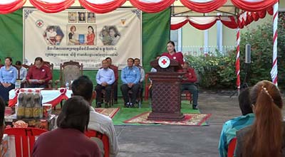 នៅក្នុងឱកាសដ៏ថ្លៃថ្លា ដែលពោរពេញដោយសេចក្តីសោមនស្សរីករាយ ឯកឧត្តម គីម រិទ្ធី ប្រធានគណ:កម្មាធិការសាខា បាននាំនូវប្រសាសន៍ផ្ដាំផ្ញើសួរសុខទុក្ខពីសំណាក់ សម្តេចកិត្តិព្រឹទ្ធបណ្ឌិត ប៊ុន រ៉ានី ហ៊ុនសែន ប្រធានកាកបាទក្រហមកម្ពុជា ដែលបានយកចិត្តទុកដាក់នូវសុខទុក្ខប្រជាពល រដ្ឋ ទៅលើការឈានឆ្ពោះទៅការបញ្ចប់អេដស៍ ក្នុងន័យនេះមានគោលបំណងទាញការយកចិត្តទុកដាក់របស់បងប្អូន និងក្មួយៗយុវជន ឱ្យបន្តការប្រុង ប្រយ័ត្នក្នុងការទប់ស្កាត់ការចម្លងមេរោគអេដស៍/ជំងឺអេដស៍។ ហើយត្រូវចូលរួមអនុវត្តតាមរយ:សារលិខិតសំខាន់ៗទាំង ៦ចណុច របស់សម្តេចកិត្តិព្រឹទ្ធបណ្ឌិត ប៊ុន រ៉ានី ហ៊ុនសែន ប្រធានកាកបាទក្រហមកម្ពុជា និងជាឥស្សរជនឆ្នើមថ្នាក់ជាតិនៃវេទិកាភាពជាអ្នកដឹកនាំតំបន់អាស៊ី-ប៉ាស៊ីហ្វិក ឆ្លើយតបមេរោគអេដស៍ ជំងឺអេដស៍ និងការអភិវឌ្ឍនៅកម្ពុជា។