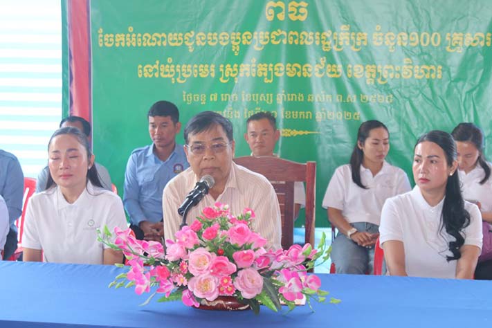 ព្រះវិហារ៖ អំណោយដ៍ថ្លៃថ្លារបស់សម្តេចមហាបវរធិបតី ហ៊ុន ម៉ាណែត នាយករដ្ឋមន្ត្រីនៃកម្ពុជា និងលោកជំទាវបណ្ឌិត ពេជ ចន្ទមុន្នី ត្រូវបានលោក អ៊ុក គឹមសាន អភិបាលរងខេត្តព្រះវិហារ ដឹកនាំក្រុមការងារ បន្តដឹកនាំយកទៅចែកជូនប្រជាពលរដ្ឋ ដែលមានជីវភាពខ្វះខាតចំនួន១០៥គ្រួសារ នៅឃុំប្រមេរ ស្រុកត្បែងមានជ័យ ខេត្តព្រះវិហារ។