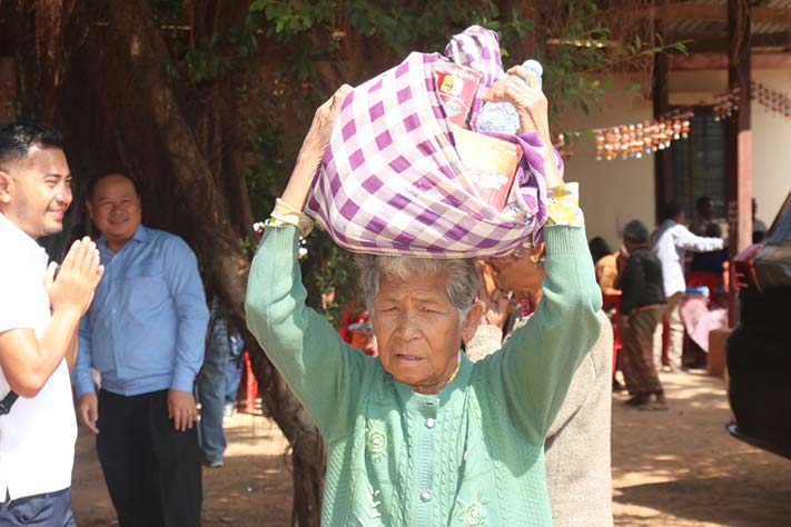 សូមបញ្ជាក់ថា អំណោយសម្តេចមហាបវរធិបតី និងលោកជំទាវបណ្ឌិត ដែលនាំមកចែកជូនលោកយាយ លោកតា ចំនួន១០៥គ្រួសារ នាពេលនេះរួមមាន៖ មីចំនួន១០៥កេស, ត្រីខចំនួន១០៥យួរ, ក្រម៉ាចំនួន១០៥, សារ៉ុងចំនួន១០៥, ភួយចំនួន១០៥ និងថ្នាំពេទ្យ១០៥កញ្ចប់៕ SKS