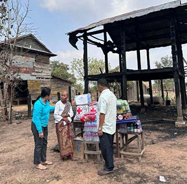 * អំណោយកាកបាទក្រហមកម្ពុជាមាន៖ អង្ករ៥០គីឡូក្រាម មី១កេស ត្រីខ១យួរ ទឹកស៊ីអ៉ីវ ១យួរ តង់១ មុង១ ក្រម៉ា១ ភួយ១ សារ៉ុង១