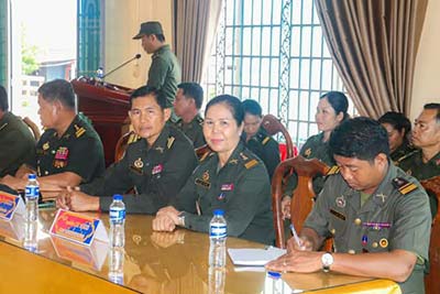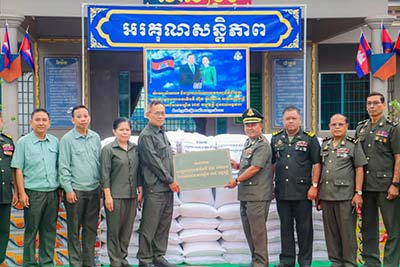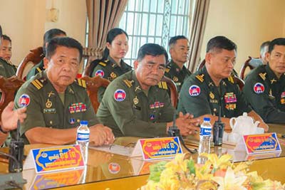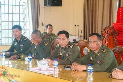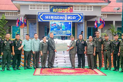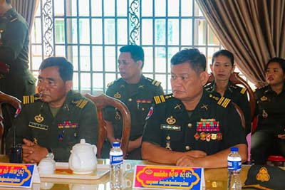 ព្រះវិហារ៖ នាយឧត្តមសេនីយ៍ គីម ប៊ុនថាន រដ្ឋមន្ត្រី ប្រតិភូអមនាយករដ្ឋមន្ត្រី តំណាងដ៏ខ្ពង់ខ្ពស់សម្តេចមហាបវរធិបតី ហ៊ុន ម៉ាណែត នាយករដ្ឋមន្ត្រី នៃកម្ពុជា និងលោកជំទាវបណ្ឌិត ពេជ ចន្ទមុន្នី នៅព្រឹកថ្ងៃទី១៣ ខែមីនា ឆ្នាំ២០២៥ បានអញ្ជើញជួបសំណេះសំណាលសួរសុខទុក្ខ និងប្រគល់អំណោយដ៍ថ្លៃថ្លារបស់សម្តេចធិបតី និងលោកជំទាវបណ្ឌិត ជូនដល់បញ្ជាការដ្ឋានតំបន់ប្រតិបត្តិការសឹករងព្រះវិហារ។