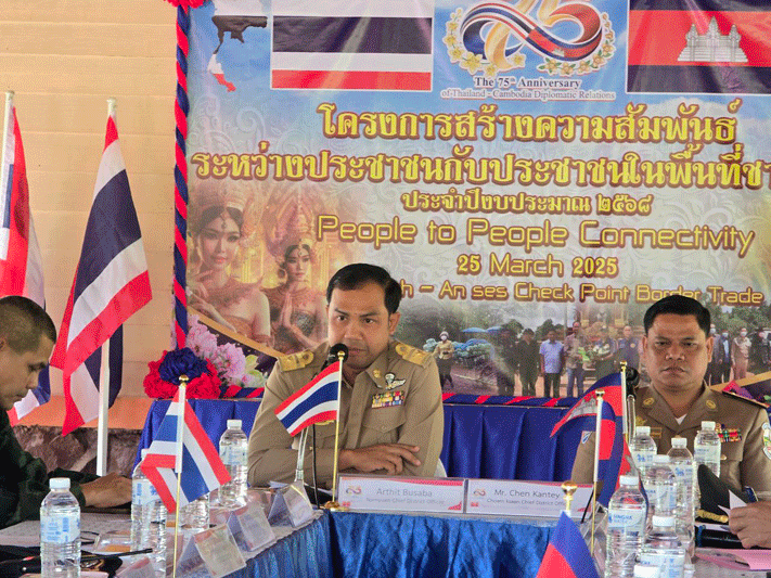 ព្រះវិហារ៖ អាជ្ញាធរស្រុកជាំក្សាន្ត ខេត្តព្រះវិហារ នៃកម្ពុជា និងអាជ្ញាធរស្រុកណាំយឺន ខេត្តអ៊ូប៊នរាជធានី នៃប្រទេសថៃ បានជួបប្រជុំពិភាក្សាការងារមួយចំនួន ក្នុងទិសដៅដើម្បីពង្រឹងកិច្ចសហប្រតិបត្តិការ ឱ្យកាន់តែល្អប្រសើរថែមទៀត រវាងស្រុកជាប់ព្រំដែន នៃប្រទេសទាំង២។