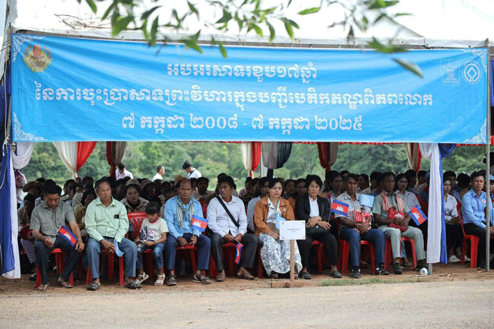 ព្រះវិហារ /នៅព្រឹកថ្ងៃទី៧ ខែកក្កដា ឆ្នាំ២០២៥ អាជ្ញាធរជាតិព្រះវិហារ បានរៀបចំពិធីអបអរសាទរខួប១៧ឆ្នាំ នៃការចុះរមណីយដ្ឋានប្រាសាទព្រះវិហារ ក្នុងបញ្ជីបេតិកភណ្ឌពិភពលោក ៧ កក្កដា ២០០៨-៧ កក្កដា ២០២៥ ក្រោមអធិបតីភាពដ៏ខ្ពង់ខ្ពស់ឯកឧត្តម ហាប់ ទូច រដ្ឋមន្រ្តីស្តីទី ក្រសួងវប្បធម៌ និងវិចិត្រសិល្បៈ ឯកឧត្តម គីម រិទ្ធី អភិបាល នៃគណៈអភិបាលខេត្តព្រះវិហារ ឯកឧត្តម គង់ ពុទ្ធិការ អគ្គនាយកអាជ្ញាធរជាតិព្រះវិហារ ឯកឧត្តម លោក លោកស្រី ប្រធាន អនុប្រធាននាយកដ្នាន មន្ទីរ អង្គភាពជុំវិញខេត្តព្រះវិហារ ព្រមទាំងសិក្សានុសិស្ស កងកម្លាំងប្រដាប់អាវុធ និងប្រជាពលរដ្ឋប្រមាណជិត៥០០នាក់។