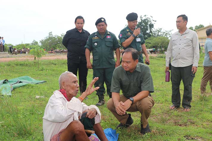 ព្រះវិហារ/ ឯកឧត្តមកិត្តិសង្គហបណ្ឌិត គន់ គីម ទេសរដ្ឋមន្ត្រី អនុប្រធានទី១ គណៈកម្មាធិការជាតិគ្រប់គ្រងគ្រោះមហន្តរាយ និងជាអគ្គលេខាធិការសមាគមអតីតយុទ្ធជនកម្ពុជា អញ្ជើញចុះពិនិត្យការរៀបចំទទួលជនភៀសសឹកនៅមណ្ឌលសុវត្ថិភាពនៅវត្តពោធិ៍៥០០០ដើម ក្នុងភូមិសាស្ត្រភូមិគូលែនត្បូង ឃុំគូលែនត្បូង ស្រុកគូលែន ខេត្តព្រះវិហារ ស្របពេលដែលសង្គ្រាមកំពុងកើតមានឡើងនៅបន្ទាត់ព្រំដែនកម្ពុជា-ថៃ ដោយសារការឈ្លានពានប្រដាប់អាវុធពីកងទ័ពថៃមកលើទឹកដីកម្ពុជា។