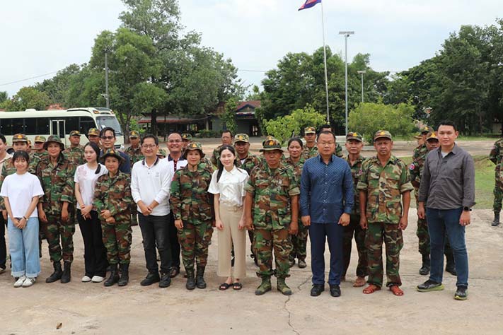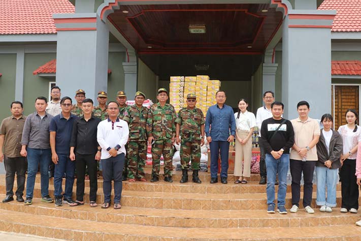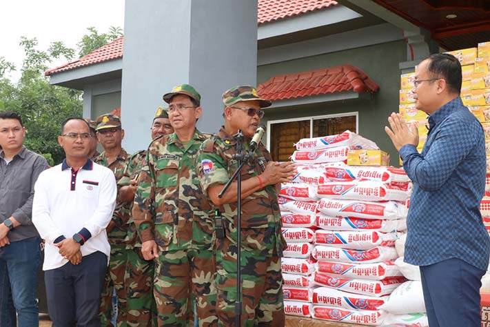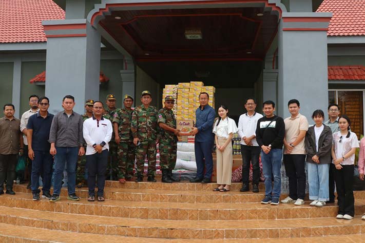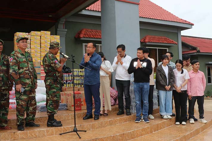 ព្រះវិហារ÷ សប្បុរសជន សាលាភាសាបរទេស ខេម អាស៊ាន នាំយកអំណោយជាគ្រឿងឧបភោគ បរិភោគសម្ភារៈមួយចំនួនមកប្រគល់ជូនកងកម្លាំងទីបញ្ជាការតំបន់ប្រតិបត្តិការសឹករងព្រះវិហារ ដែលកំពុងឈរជើងទិសជួមុខព្រំដែនកម្ពុជា ថៃ។