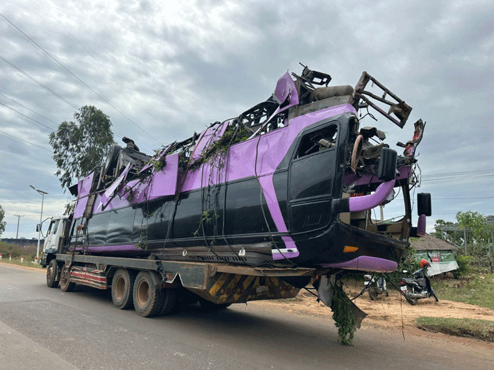 កំពង់ធំ, រថយន្ដក្រុងដឹកអ្នកដំណើរពេលយប់មួយគ្រឿង ផ្ទុកមនុស្ស៣៧នាក់ បានក្រឡាប់ធ្លាក់ចូលទឹកនៅវេលាម៉ោង៣ទាបភ្លឺ ថ្ងៃទី២០ ខែវិច្ឆិកា ឆ្នាំ២០២៥ ចំណុចស្ពានអូរប្រសាទ ភូមិជ័យជំនះ ឃុំកកោះ ស្រុកសន្ទុក ខេត្តកំពង់ធំ។