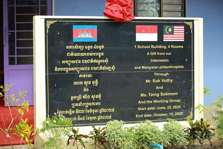 ព្រះវិហារ÷ ឯកឧត្តម គីម រិទ្ធី អភិបាល នៃគណៈអភិបាលខេត្តព្រះវិហារ បានអញ្ជើញជាអធិបតីសម្ពោធដាក់ឱ្យប្រើប្រាស់ជាផ្លូវការ នូវអគារសិក្សាថ្មីចំនួន 0១ ខ្នង 0៤បន្ទប់ ដែលជាអំណោយដ៏ថ្លៃថ្លា របស់សប្បុរសជន ជនជាតិឥណ្ឌូនេស៊ី និងប្រជាជនឥណ្ឌូនេស៊ី ដែលបានឧបត្ថម្ភកសាងឡើងតាមរយៈ លោក សុខ វុទ្ធី និងលោកស្រី តាំង សុខមុំ ដើម្បីចូលរួមចំណែកលើកកម្ពស់វិស័យអប់រំ និងបំពេញតម្រូវការបន្ទប់សិក្សានៅក្នុងមូលដ្ឋាន របស់ខេត្តព្រះវិហារ។