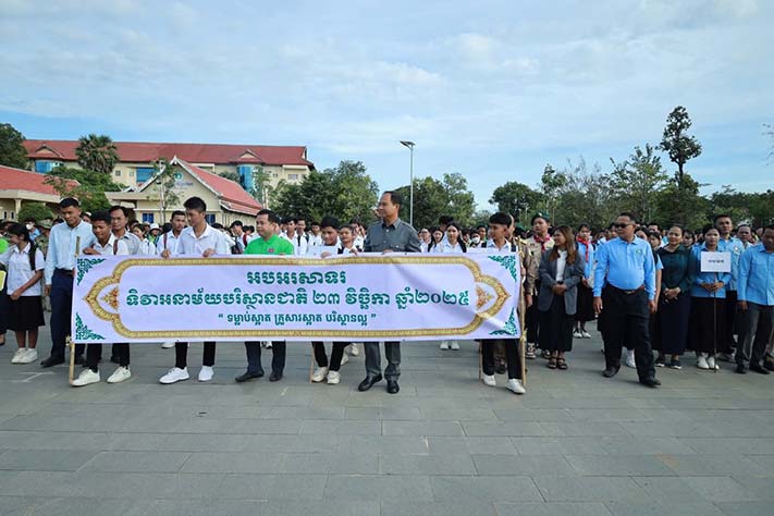 ព្រះវិហារ÷ឯកឧត្តម គីម រិទ្ធី អភិបាល នៃគណៈអភិបាលខេត្តព្រះវិហារ នៅព្រឹកថ្ងៃទី២៤ ខែវិច្ឆិកា ឆ្នាំ២០២៥នេះ បានអញ្ជើញជាអធិបតី ក្នុងពិធីអបអរសាទរទិវា បរិស្ថានជាតិ ២៣ វិច្ឆិកា ឆ្នាំ២០២៥ ក្រោមប្រធានបទ «ទម្លាប់ស្អាត គ្រួសារស្អាត បរិស្ថានល្អ» នៅបរិវេណសាលាខេត្តព្រះវិហារ។