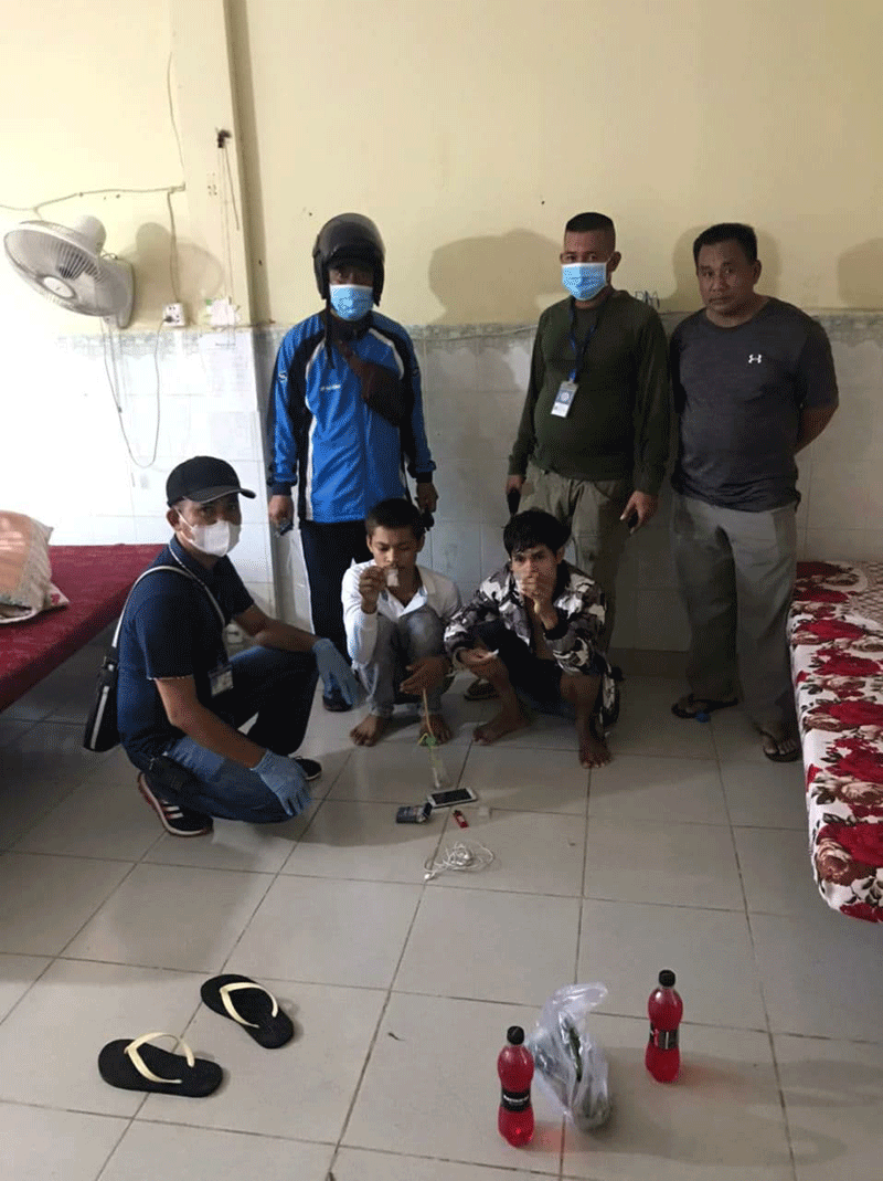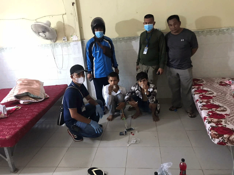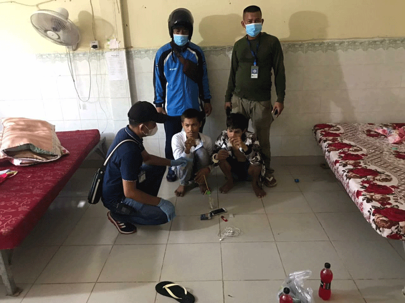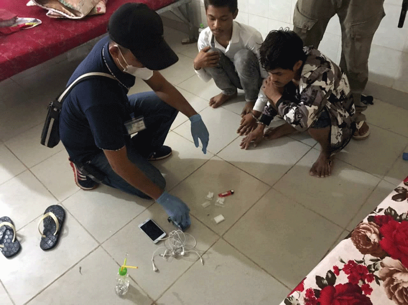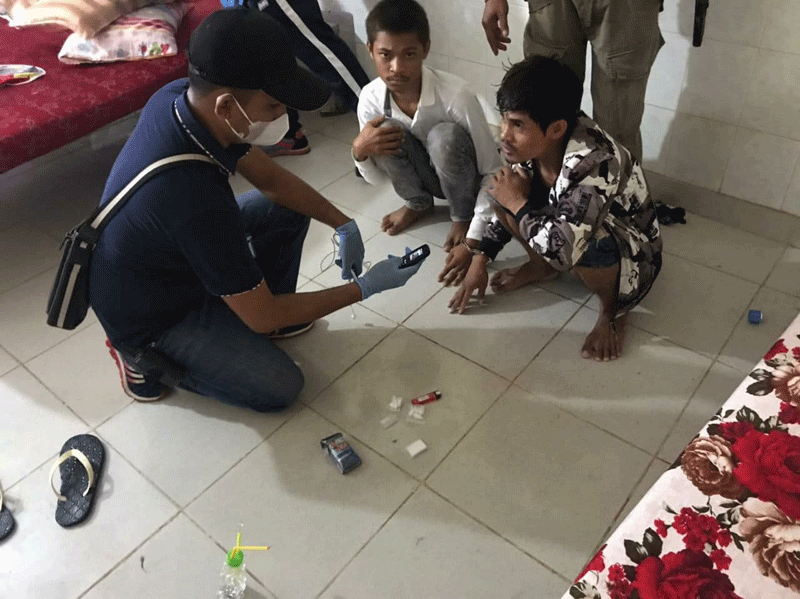 ប៉ូលិសនិយាយថា ជនសង្ស័យ២នាក់រួមមាន ១-ឈ្មោះ យ៉ែម រតនះ ភេទប្រុស អាយុ ១៩ ឆ្នាំ (ខ្មែរ) មុខរបរមិពិត មានទីលំនៅ ភូមិ កោះប្រាក់ ឃុំភូមិធំ ស្រុកកៀនស្វាយ ខេត្តកណ្តាល (ឃាត់ខ្លួន)និង២-ឈ្មោះ ពៅ កក្កដា (ហៅកយ) ភេទប្រុស អាយុ ២៤ឆ្នាំ មុខរបរមិនពិតប្រកដ មានទីលំនៅភូមិកោះប្រាក់ ឃុំភូមិធំ ស្រុកកៀនស្វាយ ខេត្តកណ្តាល (ឃាត់ខ្លួន) ។ វត្ថុតាងចាប់យករួមមាន ថ្នាំញៀន(ម៉ាទឹកកក) ចំនួន ០៣ កញ្ចប់ (ធំ២កញ្ចប់,តូច០១កញ្ចប់),ទូរស័ព្ទដៃ ០១ គ្រឿង ម៉ាកSamsung ពណ៌ស(លេខ០៧០៧៥១៦៤៣)និងសម្ភារៈវេចខ្ចប់,ប្រើប្រាស់ ថ្នាំញៀនមួយចំនួន ។ប៉ូលិសបន្តថា ដំបូងប៉ូលិសបានទទួលព័ត៌មានតាមរយៈ ទូរស័ព្ទពីម្ចាស់ ផ្ទះសំណាក់ស្នាមញញឹមថ្មី បានរាយការណ៍ប្រាប់សមត្ថកិច្ចថា «មានមុខសញ្ញាចំនួន០២ នាក់ភេទប្រុសគួរឱ្យសង្ស័យអាចប្រើប្រាស់គ្រឿងញៀនបានមកជួលបន្ទប់លេខ ១០ដេក »។