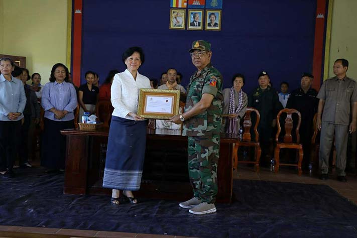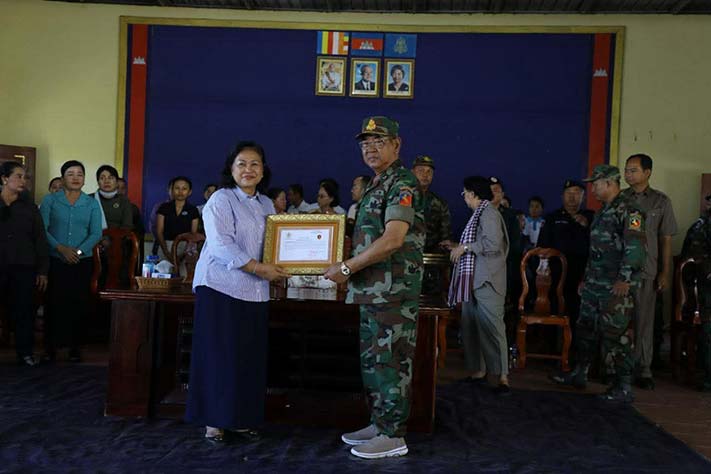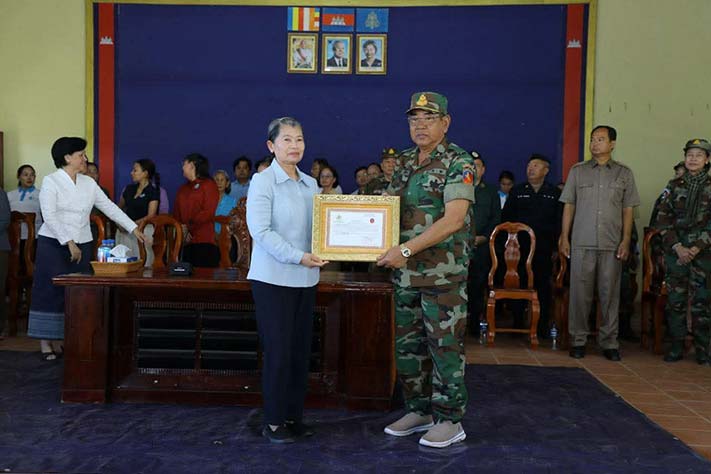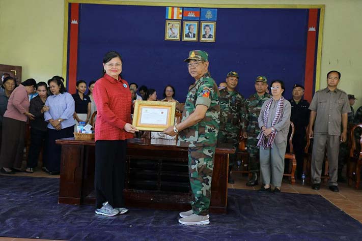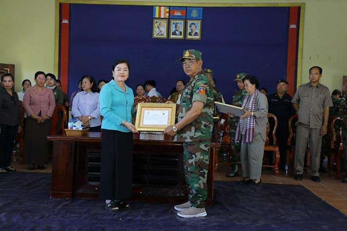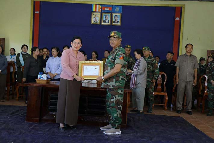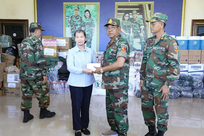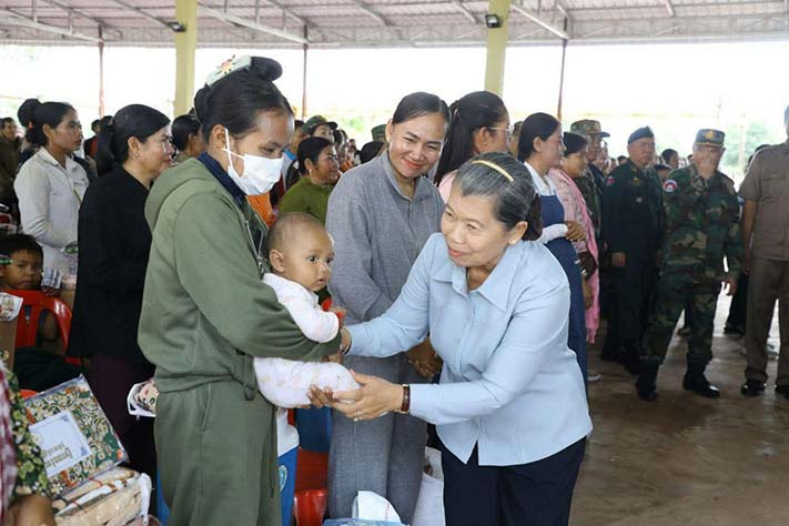 ព្រះវិហារ៖ សម្តេចកិត្តិសង្គហបណ្ឌិត ម៉ែន សំអន ឧត្តមប្រឹក្សាផ្ទាល់ព្រះមហាក្សត្រ នៃព្រះរាជាណាចក្រកម្ពុជា និងជាប្រធានគណៈកម្មាធិការសមាគមនារីកម្ពុជាដើម្បីសន្តិភាព និងអភិវឌ្ឍន៍ បានជួបសំណេះសំណាល និងនាំយកព្រះអំណោយ អំណោយគ្រឿងឧបភោគ បរិភោគ សម្ភារៈប្រើប្រាស់ចាំបាច់ និងថវិកាមួយចំនួន ចែកជូនដល់គ្រួសារកងទ័ពជួរមុខ និងជូនដល់កងពលតូចអន្តរាគមន៍លេខ៩ ស្ថិតក្នុងភូមិសែនរុងរឿង១ ឃុំទឹកក្រហម ស្រុកជាំក្សាន្ត ខេត្តព្រះវិហារ នាព្រឹកថ្ងៃអង្គារ៍ ទី២ ខែធ្នូ ឆ្នាំ២០២៥។