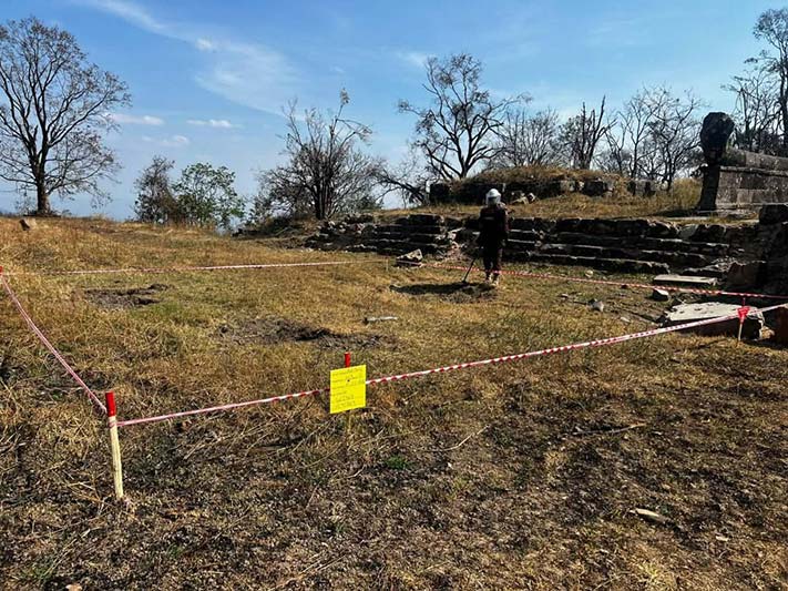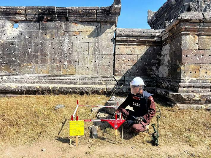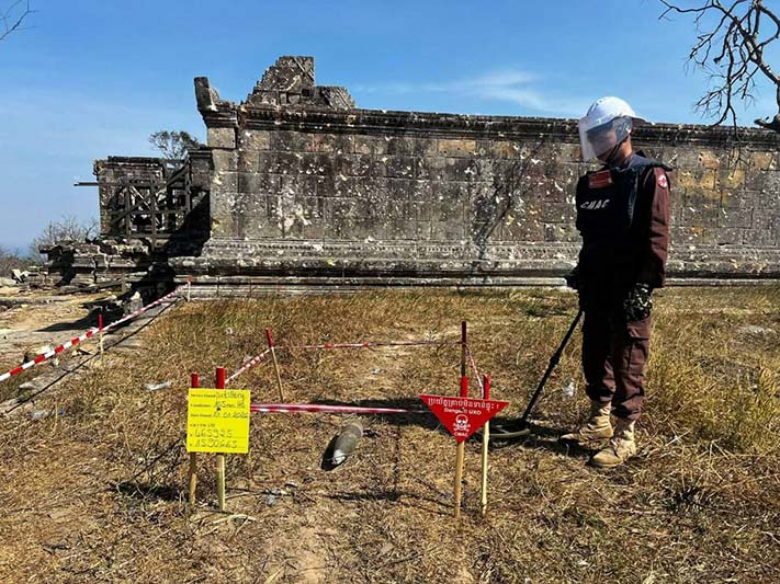 ព្រះវិហារព្រំដែន៖ CAMCសូមអំពាវនាវដល់ប្រជាពលរដ្ឋកុំចូលតំបន់ណាដែលសង្ស័យថា មានសំណល់គ្រាប់យុទ្ធភណ្ឌមិនទាន់ផ្ទុះសេសសល់ពីសង្គ្រាម ហើយមុនចូលតំបន់នោះ សូមមេត្តាសាកសួរព័ត៌មានពីអាជ្ញាធរមានសមត្ថកិច្ច ដើម្បីសុវត្ថិភាពផ្ទាល់ខ្លួន។ ទន្ទឹមនឹងនេះCAMCក៏សូមអំពាវនាវ នៅពេលលោកអ្នកប្រទះឃើញគ្រាប់មីន គ្រាប់យុទ្ធភណ្ឌមិនទាន់ផ្ទុះ គ្រាប់បែកចង្កោម និងវត្ថុចំលែកសង្ស័យជាគ្រាប់ សូមកុំប៉ះពាល់ និងសូមរាយការណ៍ជាបន្ទាន់ទៅអាជ្ញាធរមានសមត្ថកិច្ច ប៉ុស្តិ៍នគរបាល មេភូមិ មេឃុំ និងប្រតិបត្តិករបោសសម្អាតមីនរបស់អង្គភាពស៊ីម៉ាក់ដែលនៅក្បែរលោកអ្នក។