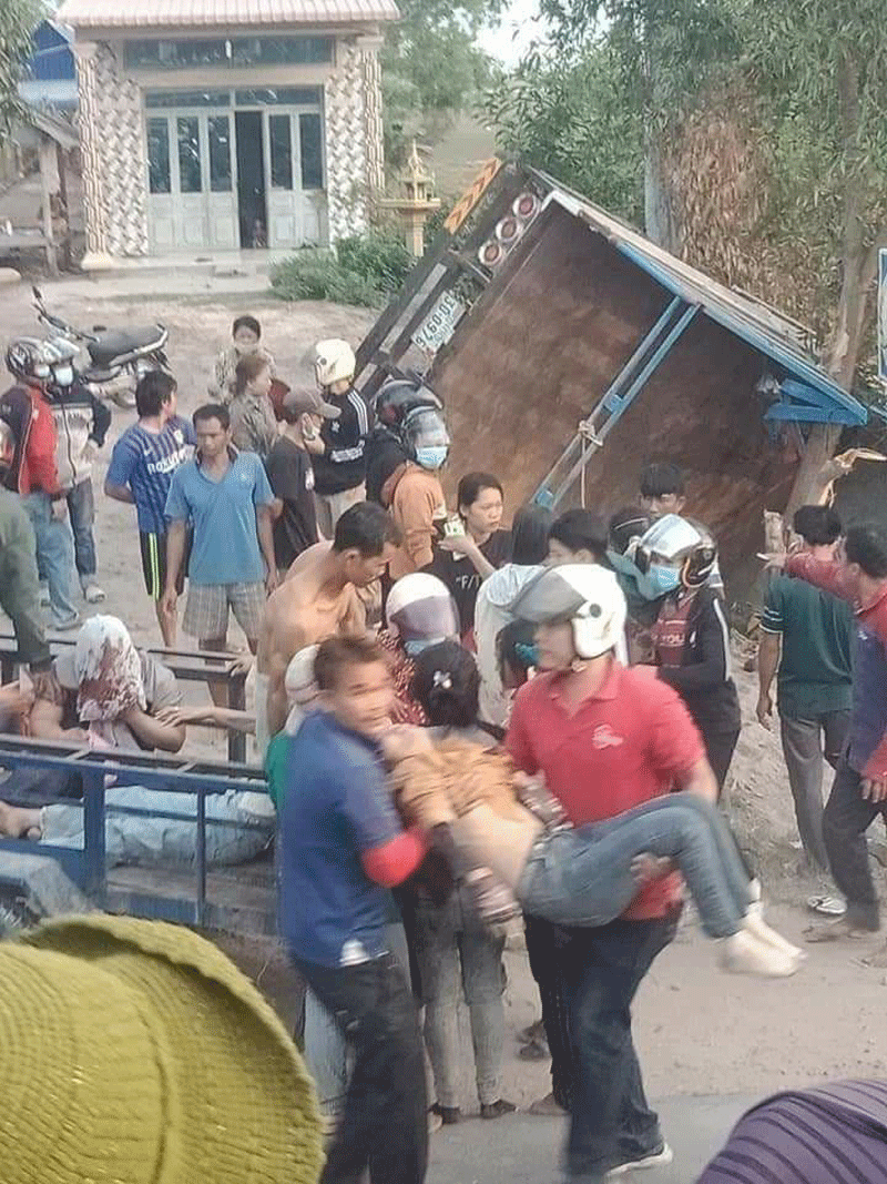 ខេត្តស្វាយរៀង៖នៅវេលាម៉ោង៦:៤០នាទីថ្ងៃទី១២ខែមីនាឆ្នាំ២០២១រថយន្តដឹកកម្មករកម្មករិនីរោងបានក្រឡាបផ្ងារជើងបណ្តាលអោយមនុស្សជិះលើរថយន្ត៦០នាក់រងរបួសធ្ងន់និងស្រាល។ករណីគ្រោះថ្នាក់ចរាចរណ៍នេះបានកើតឡើងនៅលើផ្លូវជាតិលេខ១ស្ថិតក្នុងភូមិ ព្រៃផ្តៅ សង្កាត់ ច្រកម្ទេស ក្រុង បាវិត ខេត្តស្វាយរៀង។ដោយ មិន ភក្តី