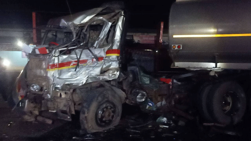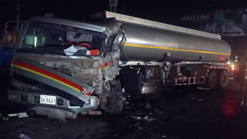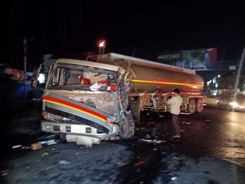 កណ្តាល ៖ មនុស្ស៣នាក់រងរបួសធ្ងន់ស្រាល បន្ទាប់ពីរថយន្តស្ទូចនិងរថយន្តដឹកប្រេងបុកគ្នា ពេញទំហឹង កើតឡើងកាលពីវេលាម៉ោង៨យប់ ថ្ងៃព្រហស្បតិ៍ ទី១១ ខែមីនា ឆ្នាំ ២០២១ នៅចំណុចមុខក្រុមហ៊ុនហុងដា ខាងលិចស្តុបផ្សារបែកចានប្រមាណជាង៣០០ម៉ែត្រ តាមបណ្តោយផ្លូវជាតិលេខ៤ ក្នុងភូមិចុងបង្គូល ឃុំបែកចាន ស្រុកអង្គស្នួល ខេត្តកណ្ដាល។