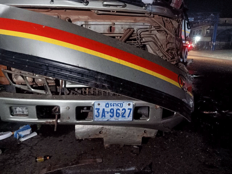 យោងតាមប្រភពពីប្រជាពលរដ្ឋបានប្រាប់ឱ្យដឹងថា ដំបូងគេឃើញរថយន្តស្ទូចមួយគ្រឿងពណ៌ស ពាក់ស្លាកលេខ ភ្នំពេញ3G-7667បើកបរដោយបុរសម្នាក់រួមដំណើរជាមួយព្រូម្នាក់ទៀត ធ្វើដំណើរតាមបណ្ដោយផ្លូវជាតិលេខ៤ ទិសដៅពីលិចទៅកើត ។ លុះជិតដល់ចំណុចកើតហេតុខាងលើ ស្រាប់តែរថយន្តស្ទូចបានផ្ទុះកង់ខាងមុខ លាន់ឮសំឡេងដូចផ្ទុះ គ្រាប់ រួចបានបន្តទៅមុខដល់កន្លែងកើតហេតុខាងលើក៏បាន រេចង្កូតមកខាងឆ្វេងដៃបុកជាមួយ រថយន្តដឹកស៊ីទែនប្រេងមួយគ្រឿង ពណ៌ស ពាក់ស្លាកលេខ ភ្នំពេញ3A-9627បើកបរដោយបុរស ម្នាក់ធ្វើដំណើរបញ្ច្រាស់ទិសដៅគ្នាពីកើតទៅលិចបុកគ្នាពេញទំហឹង បណ្ដាលឱ្យភាគីខាងរថយន្ត ស្ទូចរបួសធ្ងន់បុរសម្នាក់និងស្រាលម្នាក់។