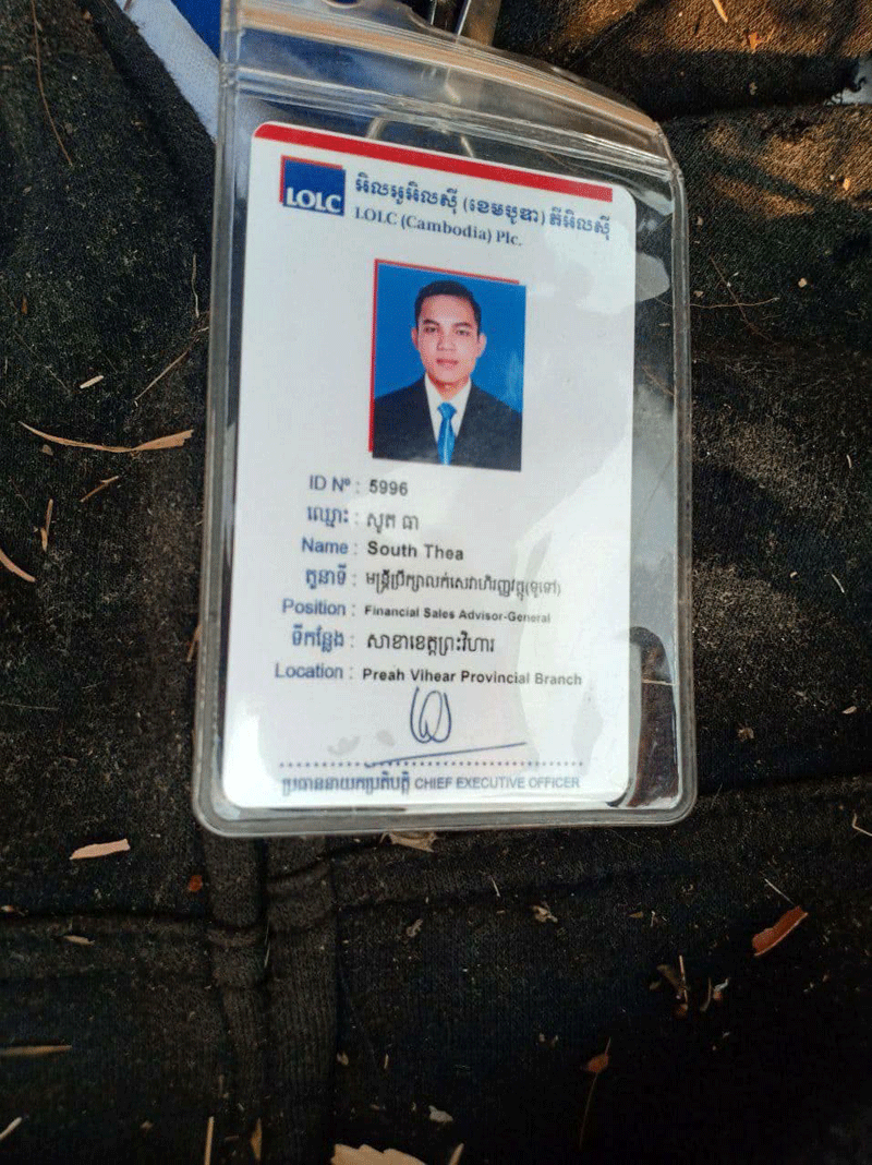 ខេត្តព្រះវិហារ.យ៉ាងហោចណាស់បុរសជាមន្ត្រីបុគ្គលឹកបំរើការឥណទាន(អិលអូអិលស៊ី)ម្នាក់បានស្លាប់ភ្លាមៗនៅនឹងកន្លែងកើតហេតុ។