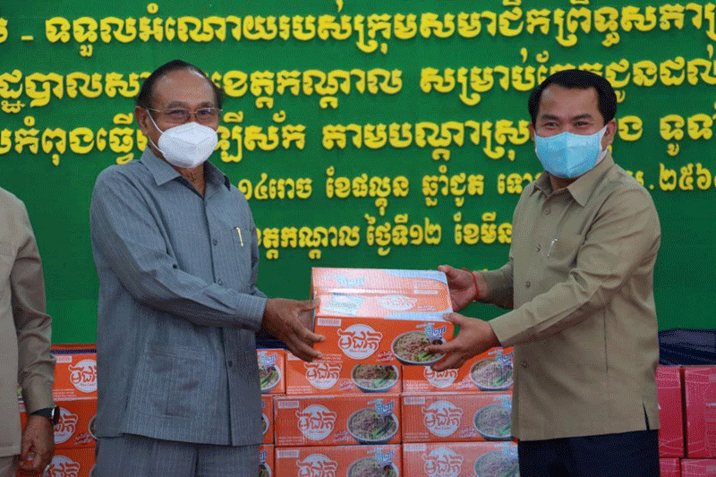 កណ្តាល៖ ឯកឧត្តមកិត្តិសង្គហបណ្ឌិត ទេព ងន អនុប្រធានទី២ ព្រឹទ្ធសភា និងជាប្រធានក្រុម សមាជិកព្រឹទ្ធសភា ប្រចាំភូមិភាគទី៣ ខេត្តកណ្តាល នៅថ្ងៃទី១២ ខែមីនា ឆ្នាំ២០២១ បាននាំយក មីជាតិចំនួន ២០០០កេស និងទឹកបរិសុទ្ធចំនួន ២០០០កេស មកប្រគល់ជូនដល់រដ្ឋបាលខេត្តកណ្តាល សម្រាប់ ចែកជូនដល់បងប្អូនប្រជាពលរដ្ឋ ដែលកំពុងធ្វើចត្តាឡីស័ក តាមបណ្តាក្រុង-ស្រុក ទូទាំងខេត្តកណ្តាល។