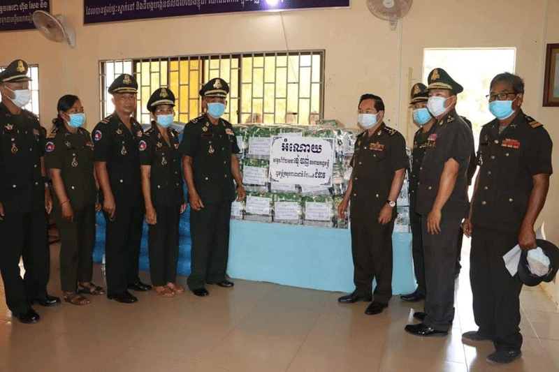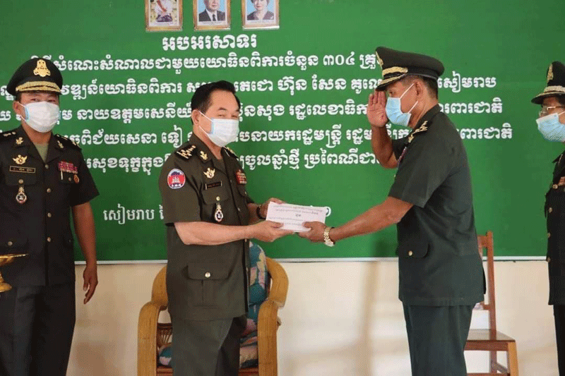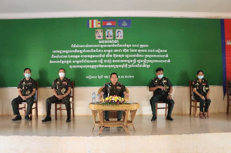 ឯកឧត្តមននាយឧត្តមសេនីយ៍ ឃឹម ប៊ុនសុង បានថ្លែងអំណរ គុណចំពោះបងប្អូនជាគ្រួសារ យោធិនពិការ ដែលបានលះបង់ប្តីសី ក្នុងបុព្វហេតុការ ពារជាតិមាតុភូមិហើយថ្នាក់ដឹក នាំគ្រប់ជាន់ ថ្នាក់ តែងតែដឹង គុណជានិច្ចចំពោះវីរភាព ដ៏អង់អាចក្លាហាន របស់បងប្អូនយោធិនពិការ ដែលបានលះបង់សាច់ឈាម ដើម្បីបុព្វហេតុជាតិ និងមាតុភូមិ ដោយគុណបំណាច់ទាំងនេះហើយ សម្ដេចតេជោ និង សម្តេចកិត្តិព្រឹទ្ធិបណ្ឌិត បានផ្ដល់នូវអ្វីៗទាំងអស់គ្រប់បែប យ៉ាងដើម្បីលើកស្ទួយជីវភាព រស់នៅរបស់បងប្អូន ព្រមទាំងក្រុមគ្រួសាររបស់យោធិនពិការ អោយកាន់តែល្អប្រសើរពីមួយ ថ្ងៃទៅមួយថ្ងៃ ។ ឯកឧត្តម រដ្ឋលេខាធិការ ក៏បានធ្វើការផ្តាំផ្ញើដល់ បងប្អូនយោធិនពិការទាំងអស់ ត្រូវខិត ខំថែរក្សាសុខភាព និង សំខាន់ចូលរួមក្នុងការបង្ការទប់ ស្កាត់ជម្ងឺរលាកផ្លូវដង្ហើមថ្មី (COVID-19) ដែលបង្កឡើងដោយវីរុសកូរ៉ូណាប្រភេទថ្មី សូមឲ្យបងប្អូន ចូលរួមអនុវត្ត នូវវិធានការ ការពារ កូវីដ ១៩ (៣ ការពារ -ពាក់ម៉ាស -លាងដៃ -គម្លាតសុវត្ថភាពសង្គម និង គម្លាតសុវត្ថភាពបុគ្គល៣កុំ -កុំចូកទៅកន្លែងបិតជិត គ្មានខ្យល់ចេញចូល និងប្រើម៉ាស៊ីនត្រជាក់ ច្រើនពេក រកកន្លែងមានខ្យល់ចេញចូល-កុំទៅកន្លែងមនុស្សច្រើនកុះករ-កុំប៉ះពាល់គ្នា កុំចាប់ដៃគ្នា កុំកៀកស្មាគ្នា កុំអោបគ្នាជាដើម)។ឯកឧត្តម ក៏បានថ្លែងអំណរគុណនិងកោតសសើរចំពោះមេបញ្ជាការ មេបញ្ជាការរង អង្គភាព នាយទាហាន និងពលទាហាន យោធិនពិការគូលែន៣១៧ សៀមរាប ដែលរក្សាបាននូវប្រពៃណី សីលធម៌ អត្តចរិក និង វិន័យរបស់កងយោធពលខេមរភូមិន្ទ ដោយកន្លងមកពុំដែល ធ្វើអំពើអ្វីមិនសមរម្យ បង្កការលំបាកដល់រាជរដ្ឋាភិបាលក្នុងការដោះ ស្រាយនោះឡើយ ។ឯកឧត្តម នាយឧត្តមសេនីយ៍ ឃឹម ប៊ុនសុង បាននាំយកអំណោយ សម្តេចពិជ័យសេនា ទៀ បាញ់ ប្រគល់ជូន អង្ករ៥ តោន និង ថវិកា ចំនួន៥លានរៀល សម្រាប់ប្រើប្រាស់ក្នុងមជ្ឈមណ្ឌលអភិវឌ្ឍ យោធិនពិការ សម្ដេចតេជោ ហ៊ុន សែន គូលែន៣១៧សៀមរាបប្រគេនដល់វត្ត ព្រះខ័នសែនជ័យ អង្ករ ៥០០គីឡូក្រាម ថវិកា១លានរៀល រួមទាំង ត្រីខ មី ប៊ីចេង ស្ករស ទឹកដោះ គោ។ ផ្តល់ជូនគ្រួសារ យោធិនពិការទាំង៣០៤គ្រួសារ ក្នុងមួយគ្រួសារទទួលបាន ត្រីខ,មី, ស្ករស,បុីចេង,ទឹកដោះគោ និង ថវិកា៣ម៉ីនរៀល ផ្តល់ជូន សិស្សានុសិស្ស ចំនួន ៦៥៧ នាក់ ក្នុង ម្នាក់ ទទួលបានថវិកា ៥ពាន់រៀល សៀវភៅ២ក្បាល និង ប៉ិច១ដើមផងដែរ។SKS