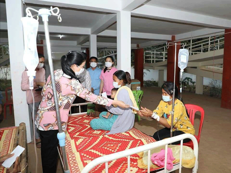 ខេត្តប៉ៃលិន ៖ ក្រោយពីទទួលបានដំណឹងថា មានប្រជាពលរដ្ឋជាច្រើននាក់ មកពីច្រើនភូមិទទួល រងនូវការពុលម្ហូបអាហារ បណ្តាលឱ្យរាគរុស ក្អួតចង្អោរ បន្ទាប់ពីពួកគេបានហូបបង្អែមនៅក្នុងពិធី រៀបអាពាហ៍ពិពាហ៍មួយកន្លែងនៅក្នុងភូមិព្រៃសន្ទះ ឃុំស្ទឹងត្រង់ ស្រុកសាលាក្រៅ ខេត្តប៉ៃលិន ដោយត្រូវបានគេដឹកបញ្ជូនទៅសង្គ្រោះបន្ទាន់នៅមណ្ឌលសុខភាព និងសម្រាកព្យាបាលនៅ ក្នុងគ្លីនិកឯកជនក្បែរៗនោះ ។ រហូតមកដល់ព្រឹកថ្ងៃទី១៣ ខែមីនា ឆ្នាំ២០២១ លោកជំទាវ បាន ស្រីមុំ អភិបាលនៃគណ:អភិបាលខេត្តប៉ៃលិន បានដឹកនាំក្រុមការងារចុះសួរសុខទុក្ខ និងជួបសំណេះសំ ណាលផងដែរ ។