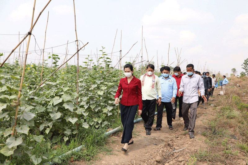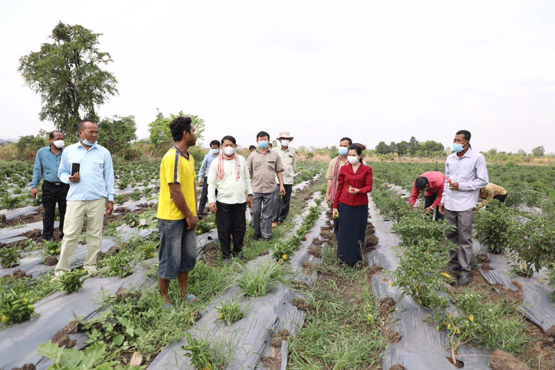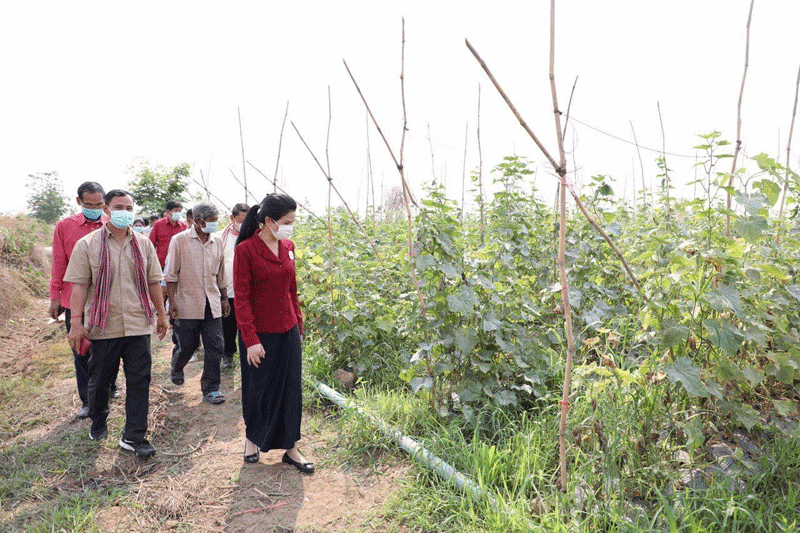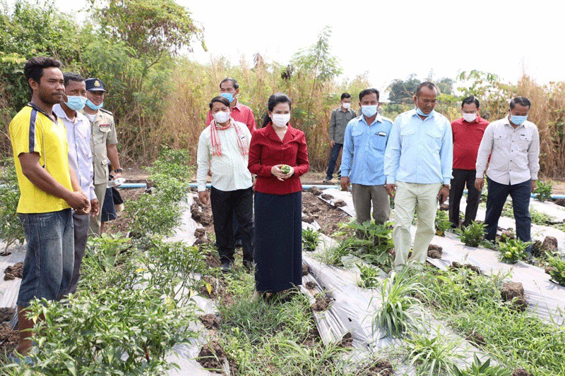 ខេត្តប៉ៃលិន ៖ បន្ទាប់ពីបានអញ្ជើញប្រគល់ផ្ទះកាកបាទក្រហមកម្ពុជា និងផ្តល់អំណោយជូន ពលរដ្ឋ១៩គ្រួសាររួចមក លោកជំទាវ បាន ស្រីមុំ អភិបាលនៃគណៈអភិបាលខេត្តប៉ៃលិន និងឯកឧត្តមអ្នកតំណាងរាស្ត្រ បានអញ្ជើញទៅពិនិត្យមើលការប្រកបរបរដាំបន្លែត្រសក់ផ្អរ សណ្តែកកួរ ម្ទេស របស់ប្រជាកសិករ នៅភូមិផ្ទះស្បូវ ឃុំស្ទឹងត្រង់ ស្រុកសាលាក្រៅ ។