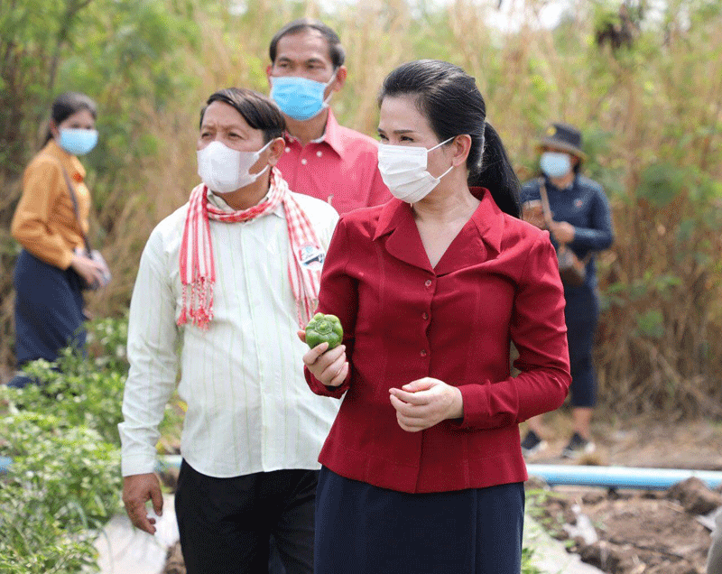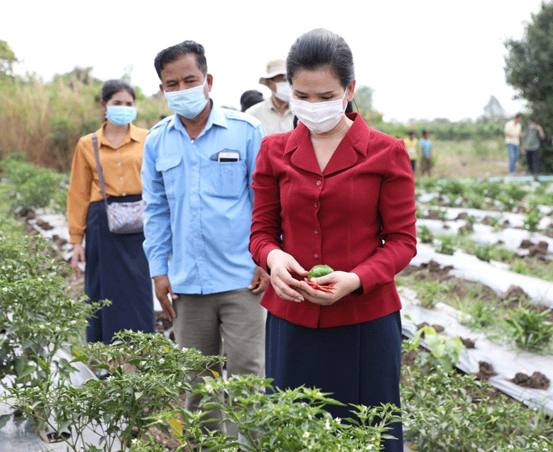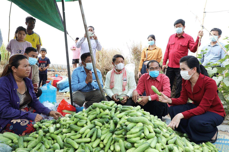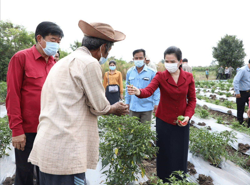 លោកជំទាវ បានជួបសំណេះសំណាល ជំរុញអោយប្រជាកសិករ ខិតខំដាំដំណាំបន្លែបន្ថែមទៀត ដោយមិនត្រូវប្រើជីគីមី ហើយត្រូវផ្លាស់ប្តូរមុខបន្លែ រើសយកប្រភេទបន្លែដែលមានទីផ្សារ តម្លៃខ្ពស់ រក្សាទុកបានយូរ ហើយជៀសវាងដាំបន្លែដដែលៗ ដូចៗ គ្នា ដែលធ្វើឱ្យប៉ះពាល់ដល់តម្លៃ និងការផ្គត់ផ្គង់នៅលើទីផ្សារ ។ លើសពីនេះ ដើម្បីចូលរួមដោះស្រាយលើបញ្ហានេះ លោកជំទាវអភិបាលខេត្ត បានអំពាវនាវដល់មន្ទីរ/អង្គភាពជំនាញជុំវិញខេត្ត ឈ្មួញរកស៊ី និងអ្នកដែលពាក់ព័ន្ធទាំងអស់ ត្រូវរួមសហការគ្នារកទីផ្សារជូនប្រជាកសិករ ដែលដាំដំណាំបន្លែត្រសក់ ម្ទេស និងបន្លែគ្រប់ប្រភេទ អោយមានតម្លៃទីផ្សារសម្រាប់លក់ដូរបានតម្លៃសមរម្យ ដើម្បីសម្រួលដល់ ជីវភាពរស់នៅរបស់ពួកគាត់ ។ ជាការឆ្លើយតបប្រជាកសិករ បានសម្តែងនូវក្តីរីករាយនិងថ្លែង អំណរគុណយ៉ាងជ្រាលជ្រៅចំពោះលោកជំទាវ ជាពិសេសឯកឧត្តម អុី ឈាន ដែលជានិច្ចកាល បានគិតគូរយកចិត្តទុកដាក់ពីសុខទុក្ខរបស់បងប្អូន ពិសេសអំពាវនាវជួយស្វែងរកទីផ្សារលក់ ដូរបន្លែត្រសក់ និងម្ទេស អោយបានតម្លៃមួយខ្ពស់សមរម្យ ដែលជាប្រភពទុនសម្រាប់ទ្រទ្រង់ ជីវភាពគ្រួសាររបស់ពួកគាត់ ។ ក្នុងឱកាសនោះដែរ ក្រុមការងារ បានជួយប្រមូលទិញបន្លែ ដែលគ្មានទីផ្សារ និងឧបត្ថម្ភថវិកាផ្ទាល់ខ្លួន ជូនដល់កសិករដែលដាំត្រសក់ ម្ទេស សណ្តែកកួរ នូវថវិកាមួយចំនួន ដើម្បីជាការលើកទឹកចិត្តផងដែរ ៕ ដោយ ៖ នីយ៉ា