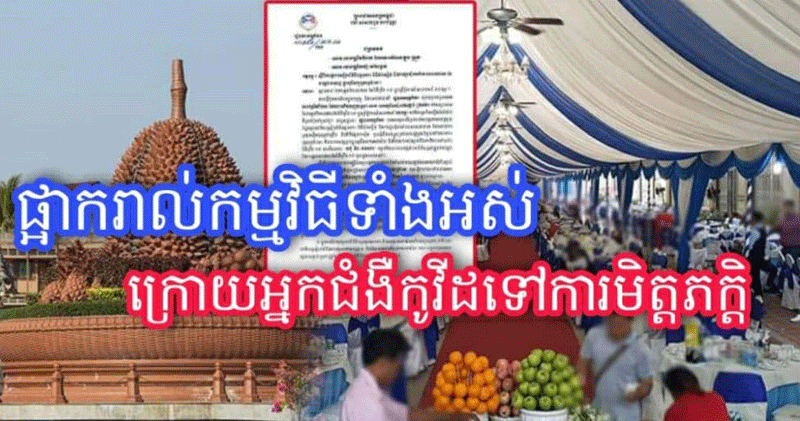 ៦. ក្នុងករណីការផ្អាកជាបណ្តោះអាសន្នការរៀបចំពិធីមង្គលការ ពិធីជប់លៀង និង ការជួបជុំបែបសាសនានានា ជាបណ្តោះអាសន្នរយៈពេល ២ សប្តាហ៍នេះ ប្រសិនបើព្រឹត្តិការណ៍សហគមន៍ ២០ កុម្ភៈ នៅតែបន្តកើនឡើងនោះ គឺត្រូវបន្តផ្អាកជាបណ្តោះអាសន្នបន្ថែមទៀតរហូតដល់រដ្ឋបាលខេត្ត ចេញនូវសេចក្តីជូនដំណឹងឲ្យដំណើរការពិធីឡើងវិញ។