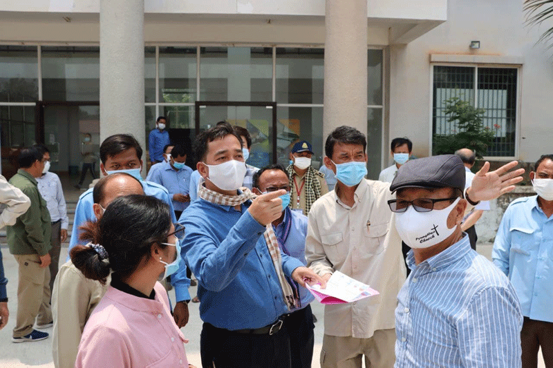 កំពង់ចាម : ឯកឧត្តម អ៊ុន ចាន់ដា អភិបាលខេត្តកំពង់ចាម និងជាប្រធានគណៈកម្មការខេត្ត ប្រយុទ្ធប្រឆាំងនឹងជំងឺកូវីដ-១៩ អមដំណើរដោយអភិបាលរងខេត្ត និង ថ្នាក់ដឹកនាំ មន្ទីរ អង្គភាព ពាក់ព័ន្ធ នាព្រឹក ថ្ងៃ ទី ១៥ ខែមិនា ឆ្នាំ ២០២១ នេះ បានអញ្ជើញ ចុះពិនិត្យការរៀបចំ ទីតាំង ត្រៀម សម្រាប់ ធ្វើ ចត្តាឡីស័ក របស់រដ្ឋបាលស្រុកចំការលេី ព្រៃឈរ ជេីងព្រៃ និង ស្រុក បាធាយ ។