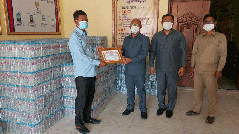 ខេត្ដស្វាយរៀង៖ នៅព្រឹកថ្ងៃពុធ ៤កើត ខែចេត្រ ឆ្នាំជូត ទោស័ក ព.ស២៥៦៤ ត្រូវនឹងថ្ងៃទី១៧ ខែមីនា ឆ្នាំ២០២១ឯកឧត្តម តូច ប៉ូលីវ៉ា អនុប្រធាន សសយក ខេត្ត តំណាងឯកឧត្តម ឌី វិជ្ជា សហភាព សហព័ន្ធកម្ពុជាខេត្តស្វាយរៀង ដោយមានចូលរួមពីក្រុមការងារ សសយក ចុះជួយស្រុកកំពង់រោទិ៍ ក្រុមការងារ សសយក វិស័យមន្ទីរវិស័យឧស្សាហកម្ម វិទ្យាសាស្រ្ត បច្ចេកវិទ្យា និងនវានុវត្តន៍ ខេត្ត គណៈកម្មាធិការ សសយក ស្រុក និងសប្បុរសជន បាននាំយកទឹកបរិសុទ្ធចំនួន ១,២០០យួររបស់ ឯកឧត្តមឌី វិជ្ជាប្រធាន សហភាពសហព័ន្ធយុវជនកម្ពុជា ខេត្តស្វាយរៀង តាមរយៈ ក្រុមការងារ សសយក វិស័យមន្ទីរវិស័យឧស្សាហកម្ម វិទ្យាសាស្រ្ត បច្ចេកវិទ្យា និងនវានុវត្តន៍ ខេត្ត និងសប្បុរសជន នានាត្រូវបានប្រគល់ជូនដល់រដ្ឋបាលស្រុកកំពង់រោទិ៍ សម្រាប់យកទៅប្រើប្រាស់ចាត់ចែងតាមមណ្ឌល ចត្តាឡីស័កក្នុងស្រុក។