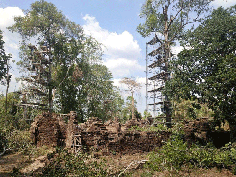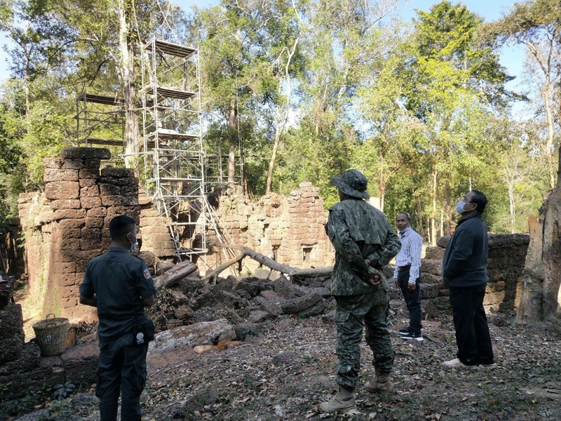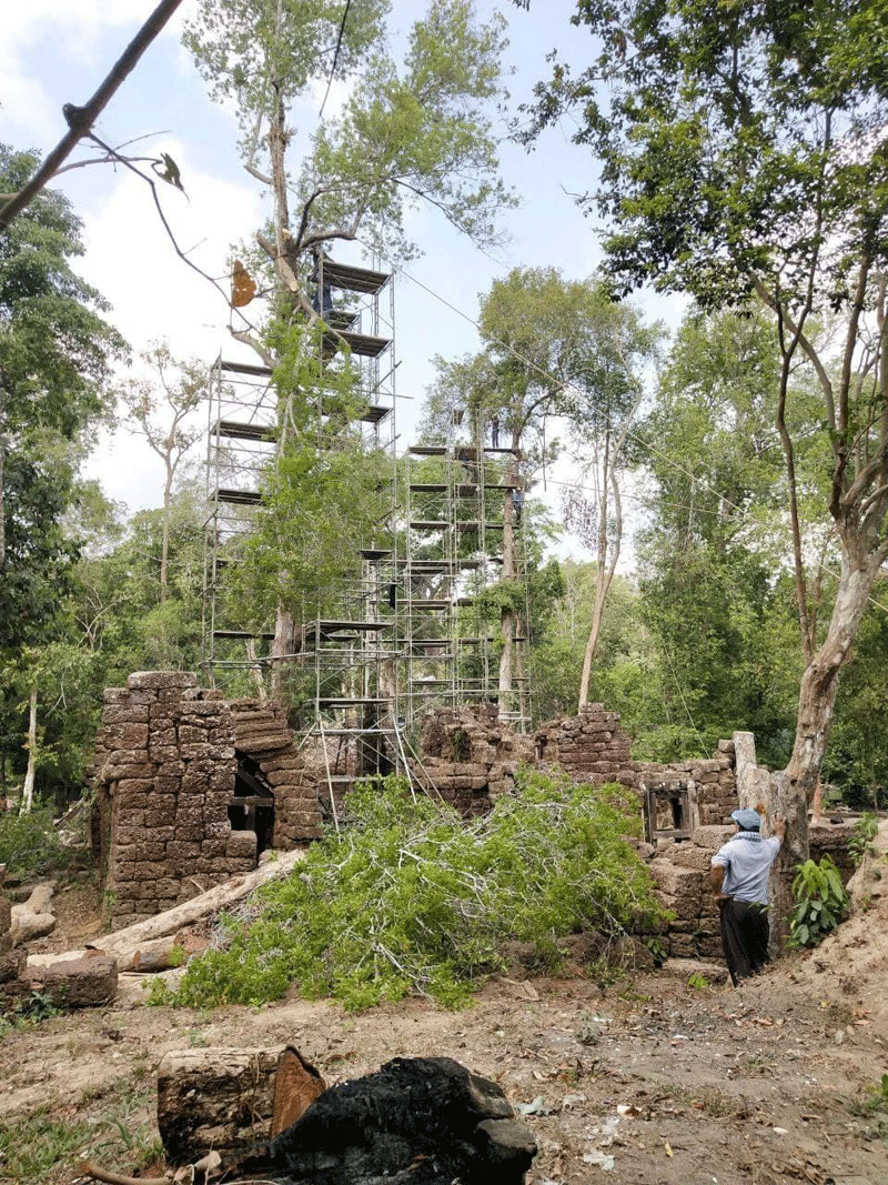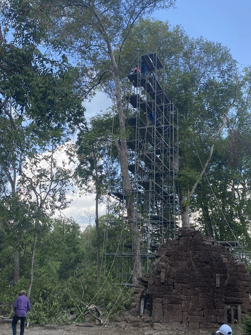 សៀមរាប៖ក្រុមជំនាញនៃនាយកដ្ឋានគ្រប់គ្រងព្រៃឈើ ទេសភាពវប្បធម៌ និងបរិស្ថាន និងនាយកដ្ឋាន អភិរក្សប្រាសាទក្រៅឧទ្យានអង្គរនៃអាជ្ញាធរជាតិអប្សរា រួមជាមួយផ្នែកពាក់ព័ន្ធបានចុះពិនិត្យ និងកំពុងអនុវត្តវិធានការបន្ទាន់ចំពោះដើមឈើចំនួន៤ដើមបន្ថែមទៀតដែលបង្កហានិភ័យខ្ពស់មកលើ រចនាសម្ពន្ធប្រាសាទក្រោលរមាស លើភ្នំគូលែន។ ការងារនេះធ្វើឡើងដើម្បីធានាសុវត្តិភាពជូនភ្ញៀវទេសចរ និងប្រជាពលរដ្ឋ ជៀសវាងគ្រោះថ្នាក់ ប៉ះពាល់ដល់អាយុជីវិត និងបង្ការកុំឲ្យប៉ះពាល់ដល់រចនាសម្ពន្ធប្រាសាទនេះកាន់តែធ្ងន់ធ្ងរ។