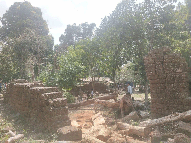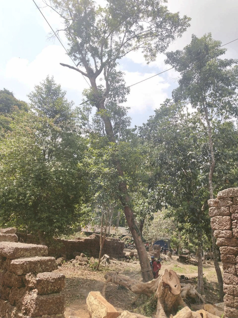ដើមឈើដែលកំពុងកាត់ដកហូតរួមមាន ដើមសំបួរ៣ដើម និងដើមអាទិត្យ១ដើម ដែលស្ថានភាពដើមឈើទាំងនោះ ដុះទ្រេតជាប់រចនាសម្ពន្ធប្រាសាទ មានប្រព័ន្ធឬស និងតួដើមមិនរឹងមាំ៕ដោយតាំង ហូ