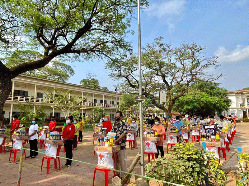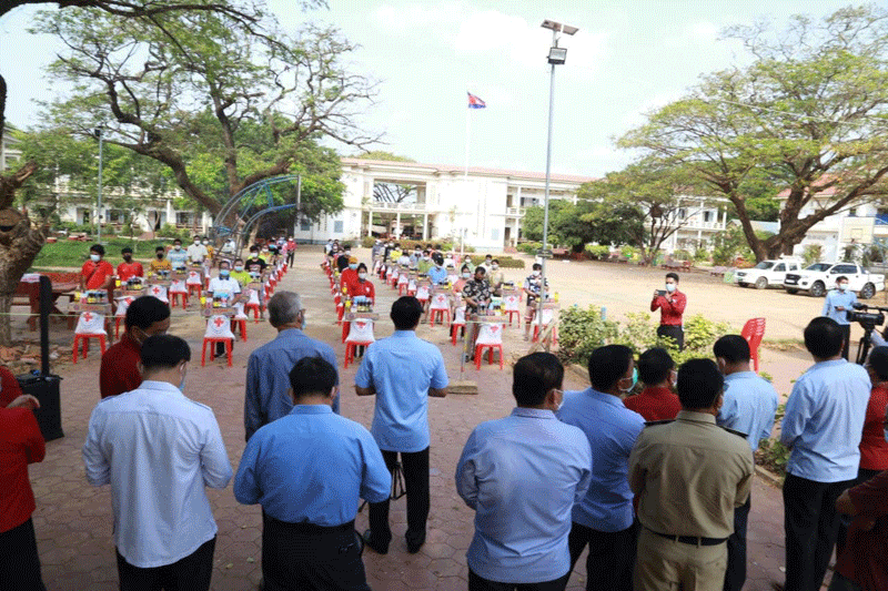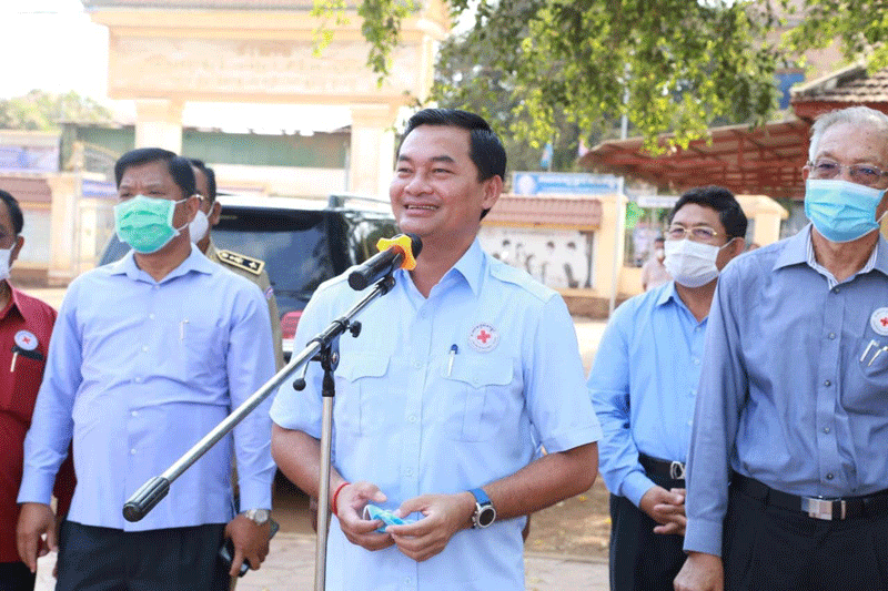 ត្បូងឃ្មុំ: ឯកឧត្តម ជាម ច័ន្ទសោភ័ណ អភិបាលខេត្ត និងជាប្រធានគណៈកម្មាធិការសាខាកាកបាទ ក្រហមខេត្តត្បូងឃ្មុំ នាព្រឹក ថ្ងៃ ទី ១៨ ខែមិនា ឆ្នាំ ២០២១ នេះ បាននាំយកអំណោយសាខាកាក បាទក្រហមខេត្ត ទៅចែកជូនពលករ ដែលកំពុងធ្វើចត្តាឡីស័ក នៅមណ្ឌលវិទ្យាល័យសម្តេចតេជោ ហ៊ុនសែន សួង ក្នុងក្រុងសួង ខេត្តត្បូងឃ្មុំ ដោយមានការ អញ្ជើញ ចូលរួមពីឯកឧត្តម ស៊ាក ឡេង ប្រធានក្រុមប្រឹក្សាខេត្ត លោក លោកស្រី សមាជិកគណៈកម្មាធិការ និងក្រុមការងារសាខាកាកបាទ ក្រហមខេត្ត-ក្រុង ព្រមទាំងអាជ្ញាធរមូលដ្ឋានផងដែរ ។ មានប្រសាសន៍សំណេះសំណាល ឯកឧត្តម ជាម ច័ន្ទសោភ័ណ បានពាំនាំប្រសាសន៍ផ្ដាំផ្ញើនិង សួរសុខទុក្ខពីសំណាក់សម្ដេចតេជោ ហ៊ុន សែន នាយករដ្ឋមន្ត្រីនៃកម្ពុជា និងសម្ដេចកិត្តិព្រឹទ្ធបណ្ឌិត ប៊ុនរ៉ានី ហ៊ុនសែន ប្រធានកាកបាទក្រហមកម្ពុជា ជូនចំពោះបងប្អូនពលករទាំងអស់ ដោយក្តីនឹករលឹកបំផុត។ ឯកឧត្តមអភិបាលខេត្ត ប្រធានគណៈ កម្មាធិការសាខាកាកបាទក្រហមខេត្ត គូសបញ្ជាក់ថា នៅទីណាមានទុក្ខលំបាកទីនោះគឺមាន វត្តមាន សម្ដេចទាំងទ្វេ ដែលតែងតែព្រួយបារម្ភ ពីសុខទុក្ខបងប្អូនប្រជាពលរដ្ឋ គ្រប់ពេលគ្រប់វេលា ទោះបី សម្ដេចមិនបានអញ្ជើញមកផ្ទាល់ក៍ដោយ តែអំណោយទាំងអស់ គឺបាននាំយកមកផ្ដល់ជូនដល់ ដៃបងប្អូនប្រជាពរដ្ឋគ្រប់ៗគ្នា។ ឆ្លៀតក្នុងឱកាសនោះ ឯកឧត្តមអភិបាលខេត្ត ក៏បានណែនាំ ឱ្យបងប្អូនដែលកំពុងធ្វើចត្តាឡីស័កទាំងអស់ ត្រូវរក្សាអនាម័យឱ្យបានជាប់ជាប្រចាំ ស្ដាប់តាមការណែនាំរបស់គ្រូពេទ្យ ក្រោយ១៤ថ្ងៃ បើមិនមានវិជ្ជមានជំងឺ covid-19ទេ នឹងបានត្រឡប់ទៅគេហដ្ឋានវិញជាក់ជាមិនខាន ដោយបន្តអនុវត្តន៍តាមវិធានការការនានា ពិសេស <<៣កុំ ៣ការពារ>>។បន្ថែមពីនោះ ឯកឧត្តម ជាម ច័ន្ទសោភ័ណ បានថ្លែងប្រាប់បងប្អូនពលករ ពីច្បាប់ថ្មីដែលទើបដាក់ឲ្យអនុវត្ត នូវកម្រិតទោសទណ្ឌ និងការផាកពិន័យ ចំពោះរាល់ការ គេចវេសនៃការធ្វើចត្តាឡីស័ក ឱ្យបងប្អូនបានយល់ច្បាស់ ដើម្បីរួមគ្នាជាមួយរាជរដ្ឋាភិបាលកម្ពុជា ក្នុងការចូលរួមបង្ការទប់ស្កាត់ការរីករាលដាលនៃជំងឺ covid 19 នៅកម្ពុជា។សូមជម្រាបថា: នៅមណ្ឌលចត្តាឡីស័កសម្ដេចតេជោហ៊ុនសែន ក្រុងសួងនេះ មានបងប្អូនពលករចំនួន៤៩នាក់ ដោយក្នុងម្នាក់ៗទទួលបាន អង្ករ២៥គីឡូក្រាម មី១កេស ត្រីខ១ឡូ ទឹកសុីអុីវ១យួរ ទឹកត្រី១យួរ ប្រេងឆា១ដប សាប៊ូ១ដុំ ម៉ាស់ និងថវិការមួយចំនួន៕