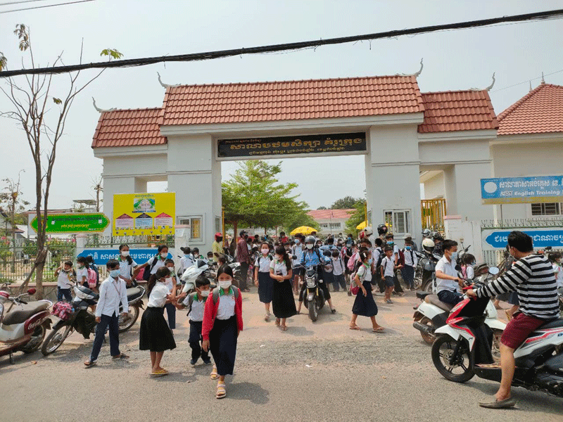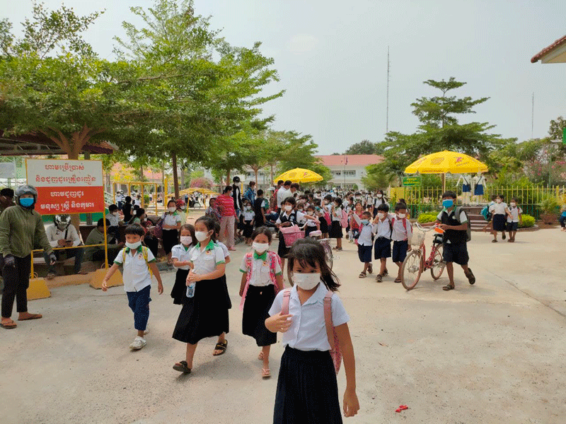 ខេត្តកំពង់ឆ្នាំង: បើទោះជាអាជ្ញាធខេត្តកំពង់ឆ្នាំងធ្វើការផ្អាក់ជាបណ្តោះអាសន្ននៅកម្មវិធីមង្គលការ ពិធីជប់លៀងនិងការជួបជុំផ្សេងៗសាលារៀនរដ្ឋនិងគ្រិះស្ថានឯកជននៅខេត្តកំពង់ឆ្នាំងត្រូវគេមើលឃើញថានៅតែដំណើរការរៀនសូត្រជាធម្មតាទេគ្រាដែលផ្ទុះឡើងនៅជម្ងឺកូវិដ១៩ ផ្ទុះឡើងនៅសហគមន៍ ២០គម្ភះ។នាយកសាលាបឋមសឹក្សាគំរូក្រុងកំពង់ឆ្នាំងលោក និង អង្គា បានអោយដឹងនៅថ្ងៃទី១៨មីនា ២០២១ នេះថាសាលាបឋមសឹក្សាគំរូក្រុងកំពង់ឆ្នាំក៍ដូចសាលានៅ ទូទាំងប្រទេសដែរកំពង់ដំណើរការ នេះមិនមានការរាត្បាតពីជម្ងឺកូវិត១៩ទេហើយសាលាមួយចំនួនដែលបានបិទកន្លងទៅនេះវាបណ្តាលមកពីការរីករាលដាលជម្ងឺកូវិត១៩ខ្លាំងទើបត្រូវបានបិទ ។ លោកនាយកសាលាគំរូក្រុងបានអោយដឹងទៀតថា សាលានេះលោកបានធ្វើការអប់រំណែនាំដល់ លោកគ្រូ អ្នកគ្រូ សិស្សទាំងអស់ ស្តីពីការការពារ៣កុំ៣ការពារជាប្រចាំតាមការណែនាំ របស់ក្រសួងអប់រំយុវជននិងកីឡា ។ លោកថាជាវិធានការនៃការធ្វើនេះបានរៀបចំត្រឹមត្រូវទី១អប់រំក្មេងៗសិស្សានុសិស្សចេញពីផ្ទះមកត្រូវពាក់ម៉ាស់ការពារហូតដល់សាលានិងមានគណះម្មាការទទួលមើលបន្ទុកត្រួតពិនិត្យមើលកុមាដោយមើលកម្តៅនិងបាញ់អាកុលផងដែរ ។ លោកនាយកសាលាបានធ្វើការសំណូមពដល់មាតាបីតាសិស្សត្រូវតែថែរក្សានៅក្នុងសហគមន៍ក្នុងគ្រួសារមានសុខភាពល្អនាំអោយសាលាមានដំណើរការហើយបើគ្រួសារមិនមានសុខភាពល្អទេសាលាក៍ត្រូវតែបិទដែរដោយសារចម្លងជម្ងឺកូវិត១៩ ក្នុងនោះមាតាបីតាត្រូវតែអនុវត្តតាមវិធានការណែ នាំរបស់ក្រសួងសុខាភិបាល ។ ប្រធានមន្ទីអប់រំយុវជននិងកីឡាខេត្តកំពង់ឆ្នាំង លោក ស៉ឹម ប្រឹម បានឲ្យដឹងតាមទូរស័ព្ទនៅ ថ្ងៃទី ១៨ មីនា ២០២១នេះ ថាសាលាបឋមសិក្សាអនុវិទ្យាល័យ វិទ្យាល័យទាំងអស់នៅក្នុងខេត្តកំពង់ឆ្នាំងមិនត្រូវបានបិទទ្វារទេគ្រាដែលដែលផ្ទុះឡើងនៅជម្ងឺកូវិត១៩នៅក្នុងសហគមន៍២០គម្ភះនោះខាងមន្ទីបានធ្វើការអប់រំណែនាំដល់នាយកសាលាលោកគ្រូអ្នកគ្រូទាំងអស់ត្រូវធ្វើយ៉ាងណាអោយសិស្សានុសិស្សពាក់ម៉ាស់លៀងដៃនិងអាកុលឬជែលដើម្បីការពារទប់ទប់ស្កាត់ការរីករាលដាលនៃជំងឺ គូវិដ១៩ និងតាមបណ្តាសាលាទាំងអស់ត្រូវតាមដានជាប្រចាំ ។