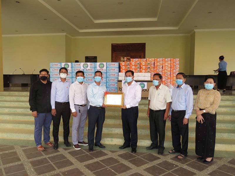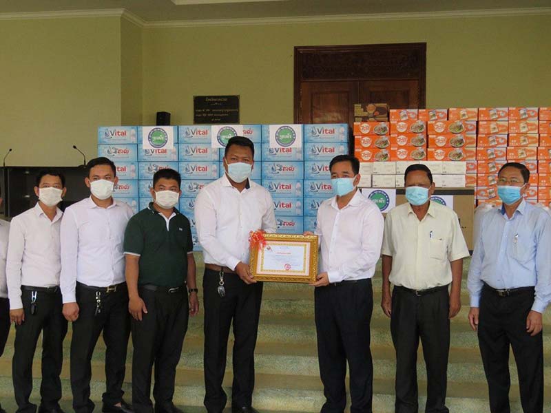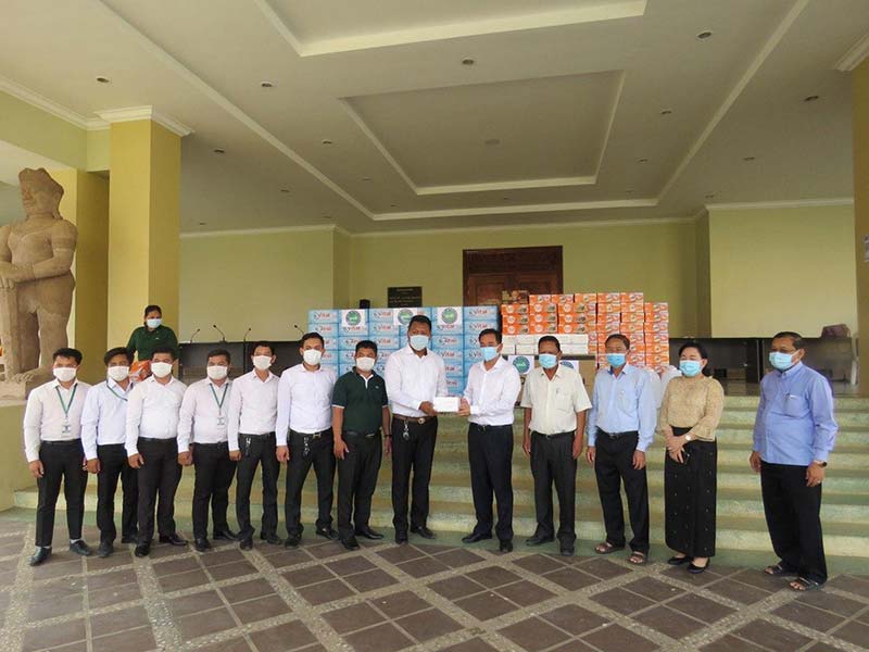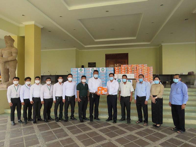 កំពង់ចាម : ដេីម្បី ចូលរួម ទប់ស្កាត់ ការ រីករាលដាល នៃ ជំងឺ កូវីដ -១៩ ក្នុង សហគមន៍ នារសៀលថ្ងៃ ទី ១៨ ខែមិនា ឆ្នាំ ២០២១ នេះ ឯកឧត្ដម វង្ស ប៊ុន វិសុទ្ធ ព្រះរាជអាជ្ញា អមសាលាដំបូង ខេត្តកំពង់ចាម និង លោកជំទាវ បានជួយ ឧបត្ថម្ភ ថវិកា ចំនួន ៤លានរៀល និង គ្រឹះស្ថាន ប្រសើរ ហ្វាយនែន បានជួយ ឧបត្ថម្ភ មីជាតិ ចំនួន ១០០កេស ទឹក បរិសុទ្ធ ១០០កេស អាល់កុល ១៥០លីត្រ និង ម៉ាស ចំនួន ៥០០០ ជូនដល់ គណៈកម្មការ ប្រយុទ្ធ ប្រឆាំង នឹង ជំងឺ កូវីដ -១៩ ខេត្តកំពង់ចាម សម្រាប់ ជួយទំនុកបម្រុងដល់ អ្នក ធ្វើ ចត្តាឡីស័ក និង សម្រាប់ ចាត់ចែង ក្នុង យុទ្ធនាការ ទប់ស្កាត់ការរីករាលដាលនៃកូវីដ-១៩ ផងដែរ ។