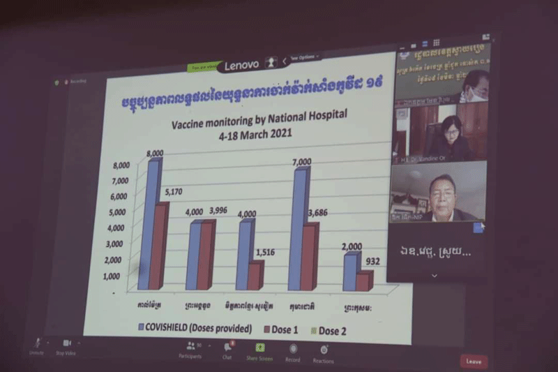 ខេត្តស្វាយរៀង៖នាព្រឹកថ្ងៃសុក្រ៦កើត ខែចេត្រ ឆ្នាំជូត ទោស័ក ព.ស២៥៦៤ ត្រូវនឹងថ្ងៃទី ១៩ ខែមីនា ឆ្នាំ២០២១នេះ ឯកឧត្តម ម៉ែន វិបុល អភិបាលខេត្តស្វាយរៀង និងជាប្រធានអនុគណៈ កម្មការចំពោះកិច្ចចាក់វ៉ាក់សាំកូវីដ១៩ ក្របខ័ណ្ឌទូទាំងខេត្តស្វាយរៀង រួមទាំងឯកឧត្តមអភិបាល រងខេត្ត ឯកឧត្តម អនុប្រធាន អនុប្រធានអចិន្ត្រៃយ៍ និងសមាជិក នៃអនុគណៈកម្មការព្រមទាំងមន្ត្រី ពាក់ព័ន្ធមួយចំនួនទៀត បានអញ្ជើញចូលរួមកិច្ចប្រជុំគណៈកម្មការចំពោះកិច្ចចាក់វ៉ាក់សាំងកូវីដ១៩ ក្នុងក្របខ័ណ្ឌ ទូទាំងប្រទេសតាមរយះវីដេអូ Zoom ក្រោមអធិបតីភាព លោកជំទាវ វេជ្ជបណ្ឌិត ឱ វណ្ណឌីន រដ្ឋលេខាធិការ ក្រសួងសុខាភិបាល និងជាប្រធានគណៈកម្មការចំពោះកិច្ចចាក់ វ៉ាក់សាំងកូវីដ១៩ ក្នុងក្របខ័ណ្ឌទូទាំងប្រទេស។ កិច្ចប្រជុំនេះបានពិភាក្សាទៅលើ ការបង្កើតអនុ គណៈកម្មការ និងបែងចែកតួនាទីភារកិច្ច និងធ្វើបទបង្ហាញស្តីពីផែនការសកម្មភាពផ្តល់វ៉ាក់សាំង បង្ហាញដោយឯកឧត្តម ឡូ វាសនាគីរី រដ្ឋលេខាធិការក្រសួងសុខាភិបាលផងដែរ៕ដោយ សាយ ហ្គន