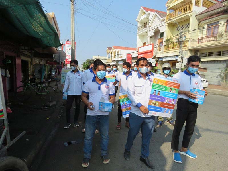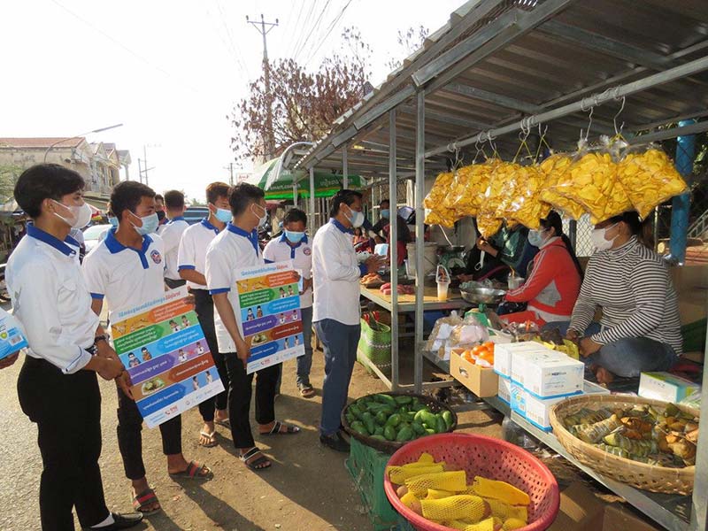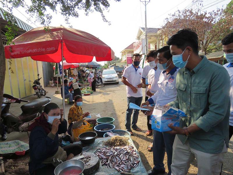 កំពង់ចាម : ដោយ អនុវត្ត តាម ការ ណែនាំ របស់ ឯកឧត្ដម អ៊ុន ចាន់ដា អភិបាលខេត្តកំពង់ចាម និង ជា ប្រធាន គណកម្មការ ខេត្ត ប្រយុទ្ធ ប្រឆាំង នឹង ជំងឺ កូវីដ -១៩ នាព្រឹក ថ្ងៃ ទី ១៩ ខែមិនា ឆ្នាំ ២០២១ នេះ សម្ព័ន្ធ យុវជន ស្រលាញ់ សន្តិភាព សាខា ខេត្តកំពង់ចាម សហការ ជាមួយ អាជ្ញាធរ មូលដ្ឋាន បាន បេីក យុទ្ធនាការ ចែក ម៉ាស ជូន ប្រជាពលរដ្ឋ នៅ ផ្សារ ព្រែក ដេីម ចាន់ ផ្សារ ៧មករា និង ទីសាធារណៈ នានា ក្នុង ក្រុង កំពង់ចាម ដេីម្បី ពញ្ញាក់ ស្មារតី ឲ្យ បន្ត ការ ប្រុងប្រយ័ត្ន ការ ឆ្លង រីករាល ដាល នៃ ជំងឺ កូវីដ -១៩ ក្នុង សហគមន៍ ។