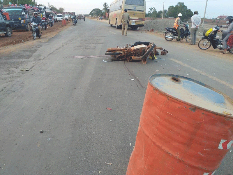ខេត្តកំពង់ឆ្នាំងៈបុរសម្នាក់បានស្លាប់ភ្លាមៗនៅក្នុងហេតុការណ៍ថ្នាក់ចរាចរណ៍រវៀងរថយន្តបុកនិងម៉ូតូទាំងព្រឹកព្រលឹមលើកំណាតើផ្លូវជាតិលេខ ៥។