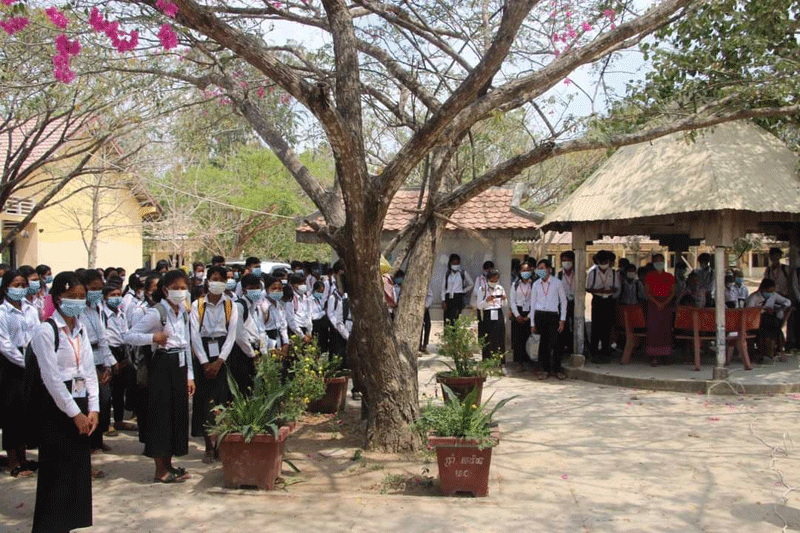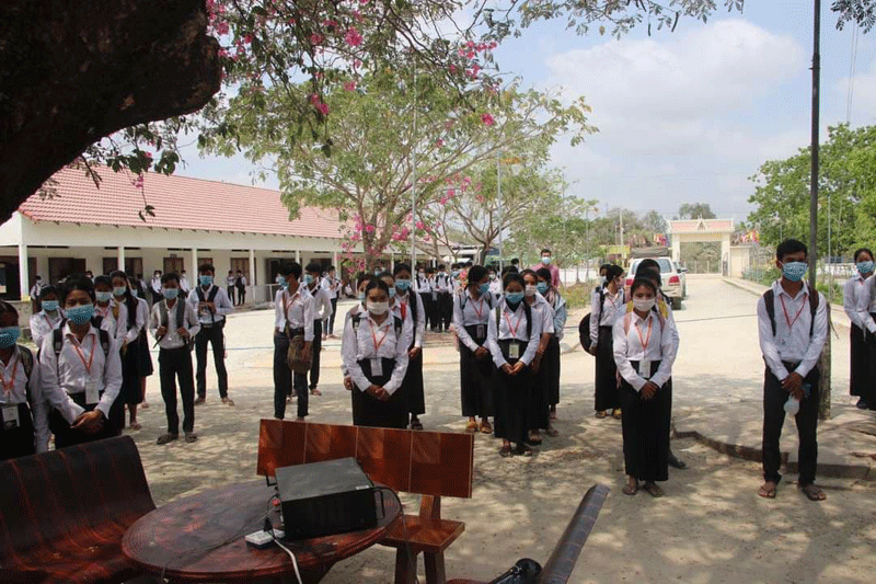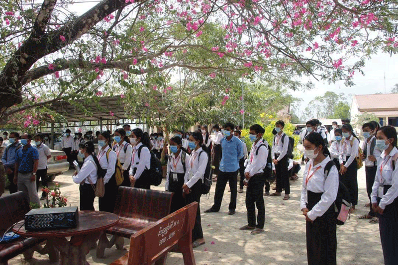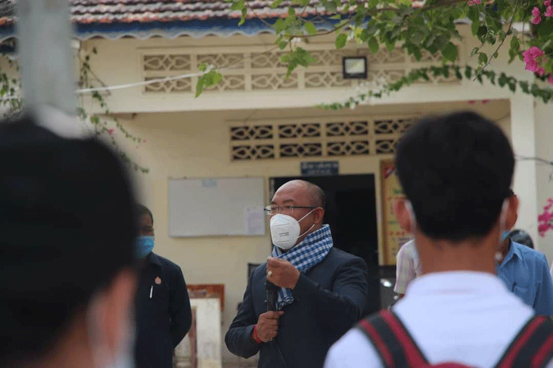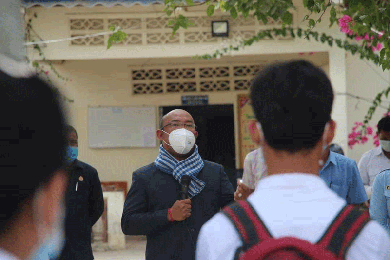 មានប្រសាសន៍ក្នុងពិធីសំណេះសំណាល ឯកឧត្ដមអភិបាលរងខេត្ត បានពាំនាំនូវការផ្ដាំផ្ញើ ពីសំណាក់លោកជំទាវកិត្តិសង្គហបណ្ឌិត ម៉ែន សំអន ឧបនាយករដ្ឋមន្រ្តី និងជាប្រធានក្រុមការងារ ចុះមូលដ្ឋានខេត្ត នឹងឯកឧត្ដម ម៉ែន វិបុល អភិបាល នៃគណៈអភិបាលខេត្ត មកជូនដល់លោកគ្រូ អ្នកគ្រូ និងសិស្សានុសិស្ស។ បន្ថែមពីលើនេះឯកឧត្ដម បានសំណូមពរដល់លោកគ្រូ អ្នកគ្រូ សិស្សានុសិស្ស សូមរក្សាសណ្ដាប់ធ្នាប់របៀបរៀបរយក្នុងថ្នាក់ ក្នុងសាលាអោយបានល្អ កុំមានភាពភ័យខ្លាច សូមរក្សាគម្លាតសង្គមអោយបានខ្ជាប់ខ្ជូន លាងដៃជាមួយសាប៊ូ និងអាល់កុល ពាក់ម៉ាស់អោយបានត្រឹមត្រូវទាំងក្នុងថ្នាក់ និងម៉ោងចេញលេង ហើយអ្វីដែលសំខាន់សូមដាន តាមផេកផ្លូវការរបស់ក្រសួងសុខាភិបាល និងរដ្ឋបាលខេត្តស្វាយរៀង មិនត្រូវជឿជាក់លើផ្សព្វផ្សាយ បំផុសបំផុល តាមបណ្ដាញសង្គមនានាដែលបង្ហោះព័ត៌មានមិនពិត ត្រូវជឿជាក់លើការដឹកនាំ របស់ឯកឧត្ដមអភិបាលខេត្ត និងជាប្រធានគណៈកម្មការប្រយុទ្ធប្រឆាំងនឹងជំងឺកូវីដ១៩ខេត្ត លើការងារប្រយុទ្ធប្រឆាំងនឹងជំងឺកូវីដ១៩ ។ ជាពិសេសសូមលោកគ្រូ អ្នកគ្រូ សិស្សានុសិស្ស ចូលរួមអនុវត្តតាមការណែនាំរបស់រាជរដ្ឋាភិបាល ក្រសួងសុខាភិបាលនិងរដ្ឋបាលខេត្តស្វាយរៀង ក្នុងការប្រយុទ្ធប្រឆាំងនឹងជំងឺកូវីដ១៩ ដែលកំពុងរីករាលដាលជាសាកលលោក រក្សាគម្លាតសុវត្ថិភាព លាងសម្អាតដៃជាប្រចាំ ដើម្បីជៀសផុតពីការឆ្លងនៃជំងឺមួយនេះ៕