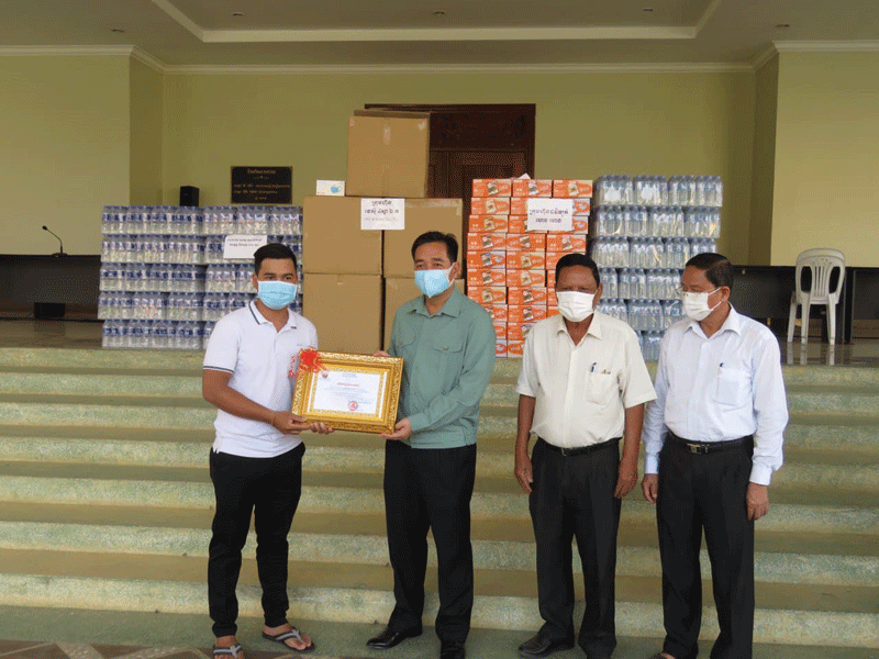 គួរបញ្ជាក់ថា ក្នុងពិធីប្រគល់ និងទទួល អំណោយនេះ ដោយសាខាពន្ធដារខេត្តកំពង់ចាម បានជួយ ឧបត្ថម្ភថវិការចំនួន ២លានរៀល . ក្រុមហ៊ុន អាន ម៉ារឌីគ្រុប ជួយឧបត្ថម្ភថវិការចំនួន១០លានរៀល . ក្រុមហ៊ុនខេស៊ី ៤ស្ការ ជួយឧបត្ថម្ភថវិការចំនួន ៤លានរៀល និងម៉ាស ចំនួន ១ម៉ឺន ម៉ាស. ក្រុម ហ៊ុន ដីឡូត៍ មិត្ត អិត ជួយឧបត្ថម្ភថវិការចំនួន ១លានរៀល និង ក្រុមហ៊ុន ដីឡូត៍ ហេង ហេង ជួយឧបត្ថម្ភ ទឹកបរិសុទ្ធចំនួន១៥០ យួរនិង មីជាតិ ៥០កេស ដើម្បី ជួយទំនុកបម្រុងដល់បងប្អូនប្រជាពលរដ្ឋដែល កំពុងធ្វើធ្វើចត្តាឡីស័កផងដែរ៕