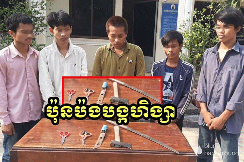 សូមជម្រាបជូនថា កាលពីថ្ងៃទី១៧ ខែ មីនា ឆ្នាំ ២០ ២១វេលាម៉ោង១៦និង៤០នាទី នៅចំណុច សា លា រៀនវិទ្យាល័យរូងជ្រៃស្ថិត ក្នុងភូមិប្រគាប ឃុំរូងជ្រៃ ស្រុកថ្មគោ ល ខេត្តបាត់ដំបងក្រុមក្មេង ខាងលេី បានជិះម៉ូតូជាច្រេីនគ្រឿងប្រដាប់ដោយកាំ បិត តាមបង្ហហិង្សាទៅលេីគូរទំនាស់ ជាសិស្សសា លានៅទី នោះ ក៏ប៉ុន្តែសកម្មភាពនេះត្រូវខកខានទៅវិញដោយ សារគេស្វែង រកគូរទំនាស់មិនជួប ក៏ប៉ុន្តែសកម្មភាពរបស់ពួកគេបានបង្កនូវការភ័យខ្លាចពីមហាជន នៅក្នុងមូលដ្ឋាននេះ។ នៅក្រោយកេីតបញ្ហាភ្លាមៗសម្ថកិច្ចនគរបាល បានធ្វេីការស្រាវជ្រាវជា បន្ទាន់រហូតឈានទៅកំណត់បានពីមុខសញ្ញានេះនិងបានឃាត់ខ្លួនពួកគេបានចំនួន០៥នាក់នៅថ្ងៃនេះ។