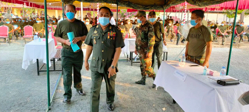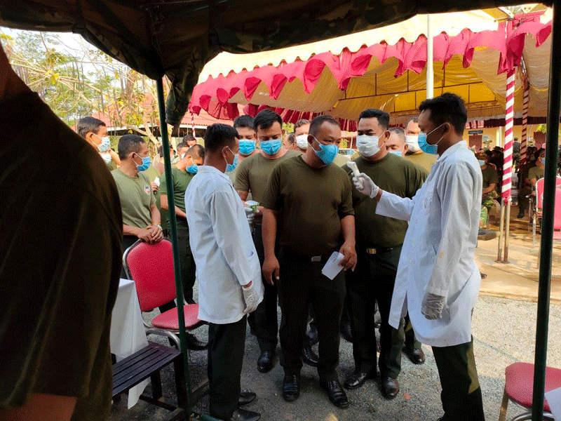 ការចាក់វ៉ាកសាំងការពារជម្ងឺកូវិត.១៩ត្រូវគេមើលឃើញកំពង់ត្រូវបានធ្វើការចាក់ជូនកងយោធពលខេមរភូមិន្ទនៅថ្ងៃទី២០មីនា២០២១នៅក្នុងទីបញ្ជាការរដ្ឋានតំបន់ប្រតិបត្តការសឹករងកំពង់ឆ្នាំង ជាលើកទី២ ។មេបញ្ជាការតំបន់ប្រតិបត្តិការសឹកខេត្តកំពង់ឆ្នាំងលោកឧត្តមសេនីយ៍ត្រី .អ៊ុសុភា. បានអោយដឹងថា.ថ្នាំវ៉ាក់សាំងការពារជម្ងឺកូវិត.១៩ចំនួន៨៧៣ដុសត្រូវបាននាំយកមកចាក់ជូនកងយុទ្ធពលខេមរៈភូមិន្ទនៅតាមបណ្តាអង្គភាពដែលកំពុងឈរជើងនៅក្នុងខេត្តកំពង់ឆ្នាំងមានសាលាពលទាហ៊ានយោធភូមិភាគពិសេស .កងកាំភ្លើងធំក្រាំងតាមុំនិងកងកាំភ្លើងធំភូមិភាគពិសេស .តំបន់អភិវឌ្ឍន៍ .កងទព័អាកាស់.អង្គភាពស៊ីម៉ាក់.តំបន់ប្រតិបត្តសឹករងខេត្តកំពង់ឆ្នាំង.និងកងរាជអាវុធហត្ថខេត្តកំពង់ឆ្នាំង ។មេបញ្ជាកាប្រតិបត្តិការសឹករងខេត្តកំពង់ឆ្នាំងលោកឧត្តមសេនីយ៍ត្រី. អ៊ុសភាព.បានបញ្ជាក់ អោយដឹងទៀតថាការចាក់វ៉ាក់សាំងការពារជំងឺកូវីដ19 ដល់កងយុទ្ធពលខេមរៈភូមិន្ទដែលឈរ ជើងនៅក្នុងខេត្តកំពង់ឆ្នាំងទាំងអស់នៅថ្ងៃនេះវាជាលើកទី២ដែលមានចំនួន៨៧៣នាក់បន្ទាប់ពីកងកម្លាំងទាំងអស់បានចាក់នៅលើកទី១រួចមកហើយផងដែរ ។ មេបញ្ជាការប្រតិបត្តការសឹករង ខេត្កំពង់ឆ្នាំងបានបញ្ជាកអោយដឹងទៀតថាការចាក់វ៉ាកសាំងជូនបងប្អូនកងយុទ្ធពលខេមរភូមិន្ទព្រឹកនេះបើមិនទាន់ទេគេនិងបន្តចាក់នៅពេលរសៀលនេះទៀតដើម្បីអោយអស់និងបញ្ចប់នៅថ្ងៃនេះផងដែរ ។មេបញ្ជាការតំបន់ប្រតិបត្តការសឹករងខេត្តកំពង់ឆ្នាំងលោកឧត្តមសេនីយ៍ត្រី .អ៊ុសុភា បានបញ្ជាក់ អោយដឹងថាថ្ងៃនេះលោកក៍បានមកចូលរួមក្នុងការចាក់វ៉ាក់សាំងការពារជម្ងឺកូវិត.១៩តាមការណែនៃរបស់ប្រមុខរាជរដ្ឋាភិបាលចូលរួមការពារការរីករាលដាលជម្ងឺកូវិត ១៩ និងអនុវត្តតាមវិធានការ ណែនាំរបស់ក្រសួងសុខាភិបាលផងដែរ ។ មេបញ្ជាការតំបន់ប្រតិបត្តិការសឹករងកំពង់ឆ្នាំង បានថ្លែងអំណគុណដល់ប្រមុខរាជរដ្ឋាភិបាលដែលមានសម្ដេចអគ្គមហាសេនាបតីតេជោហ៊ុនសែនជាប្រមុខដែលលោកតែងតែបានយកចិត្តទុកដាក់លើសុខភាពរបស់កងយោធពលខេមរភូមិន្ទនៅទូទាំងប្រទេសក៏ដូចជានៅក្នុងខេត្តកំពង់ឆ្នាំងផងដែរនិងសូមឱ្យសម្ដេចជួបតែសេចក្តីសុខទាំងក្រុមគ្រួសារមានសុខភាពល្អបន្តដឹកនាំប្រទេសកម្ពុជាឈានទៅរកការអភិវឌ្ឍន៍បន្តទៀត៕ដោយ សាន ផល្លា