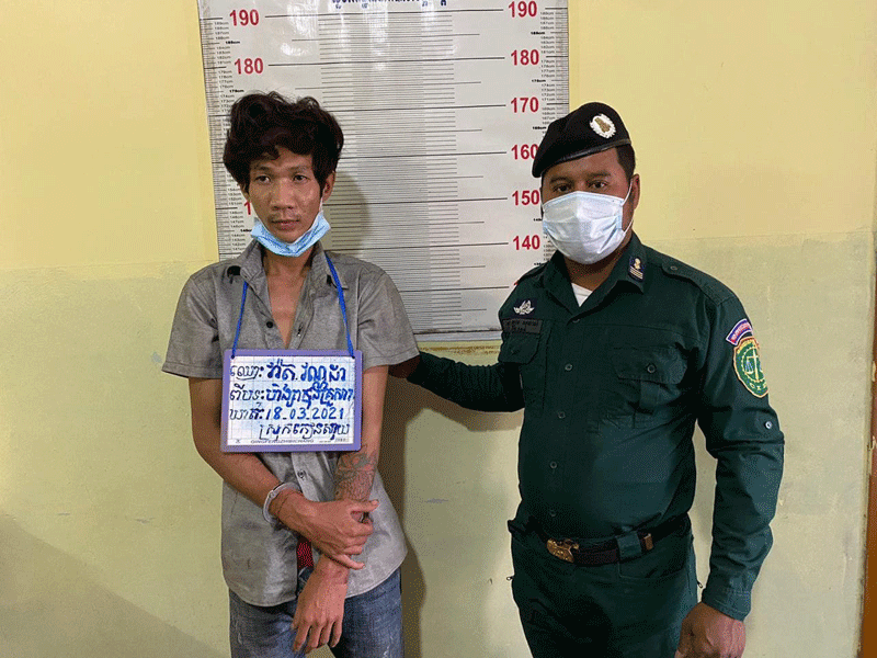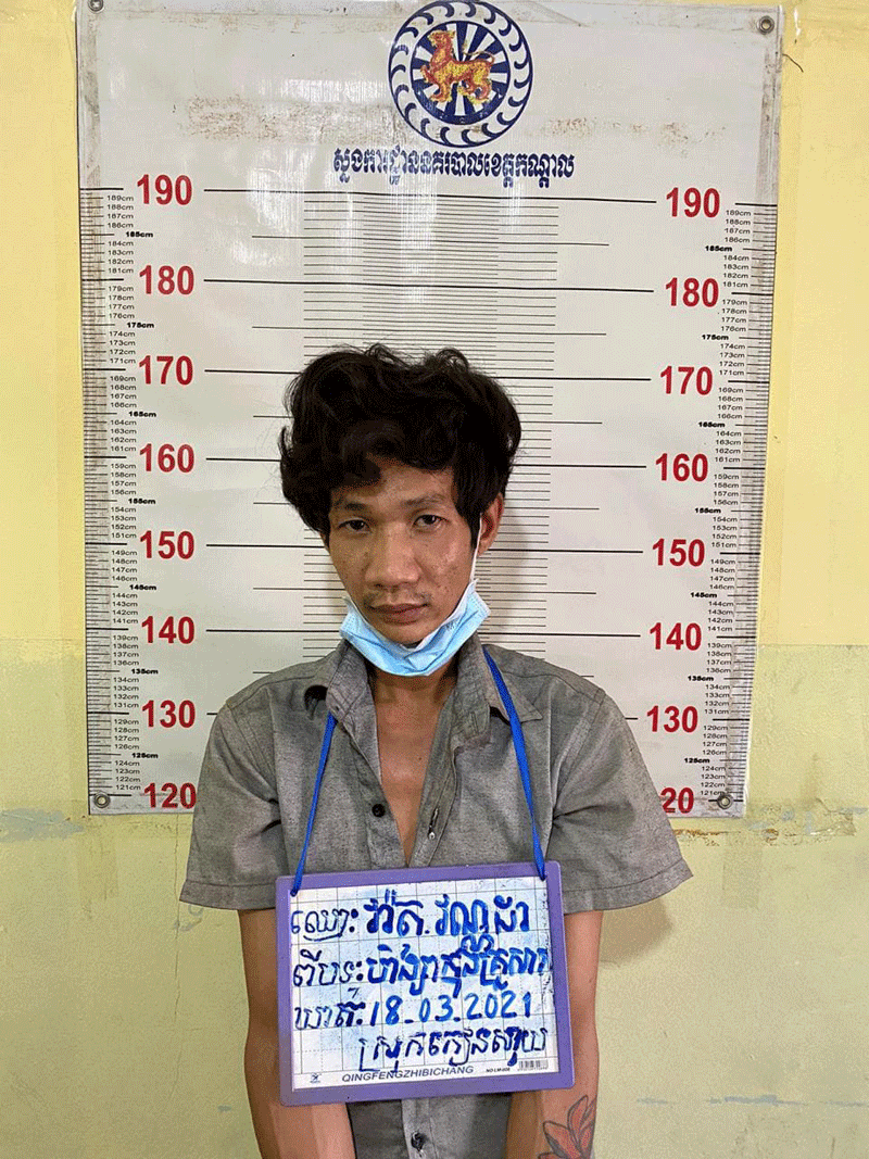 ចំណែកជនសង្ស័យឈ្មោះ វ៉ាត វណ្ណដា (ហៅពេជ្រ) ភេទប្រុស អាយុ២៤ឆ្នាំ ជនជាតិខ្មែរ មុខរបរកម្មកររោងចក្រ មានទីលំនៅភូមិជ្រោតាប៉ា ឃុំគគីរ ស្រុកកៀស្វាយ ខេត្តកណ្តាល (ត្រូវជាកូនបង្កើត)ត្រូវបានសមត្ថកិច្ចឃាត់ខ្លួន។ វត្ថុតាងចាប់យកមាន ដែកគាស់ដែកចំនួន០១ប្រវែង ៥៣សង់ទីម៉ែត្រនិងកាំបិតចិតបន្លែមុខ២ ចំនួន០១ប្រវែង២០សង់ទីម៉ែត្រ។