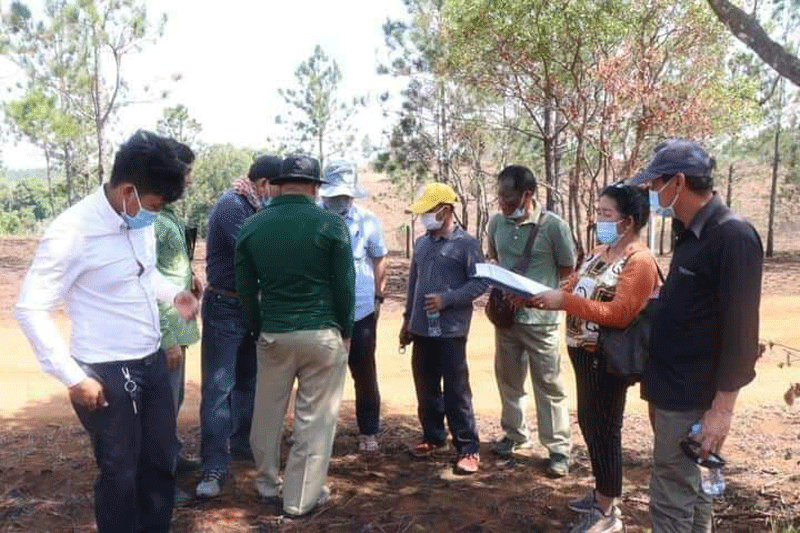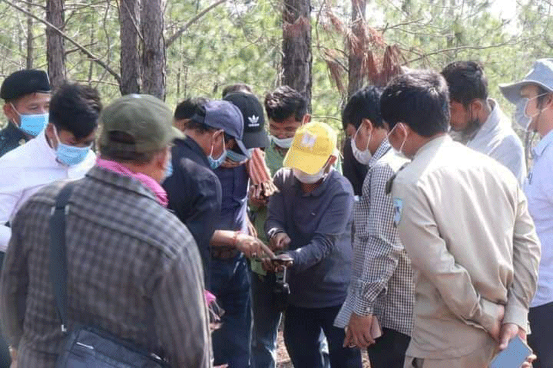 មណ្ឌលគិរីៈ នាថ្ងៃទី២២ ខែមីនា ឆ្នាំ២០២១ អាជ្ញាធរខេត្តមណ្ឌលគិរី ដែលដឹកនាំដោយលោក ជាក់ ម៉េងហ៊ាង អភិបាលរងខេត្ត និងលោក ស៊ន សារុន នាយករដ្ឋបាលខេត្តមណ្ឌលគិរី រួមទាំងមន្ត្រីជំនាញ បានចុះពិនិត្យ និងផ្ទៀងផ្ទាត់លើទីតាំងដី ដែលបានដកហូតពីការកាន់កាប់ដោយខុសច្បាប់ តាមដីកាលេខ ០០៧/១៩ ដក .បក ចុះថ្ងៃទី២៣ ខែសីហា ឆ្នាំ២០១៩ ដែលមានទំហំចំនួន ៤៧២,៨០៩ហិកតា របស់រដ្ឋបាលខេត្តមណ្ឌលគិរី ស្ថិតនៅភូមិពូរ៉ាង ឃុំសែនមនោរម្យ ស្រុកអូររាំង ខេត្តមណ្ឌលគិរី។